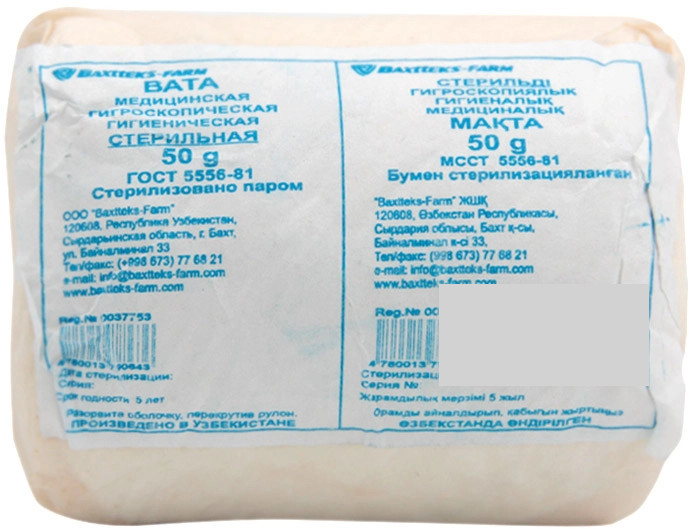 Baxtteks-Farm Вата медицинская гигроскопическая гигиеническая стерильная+4