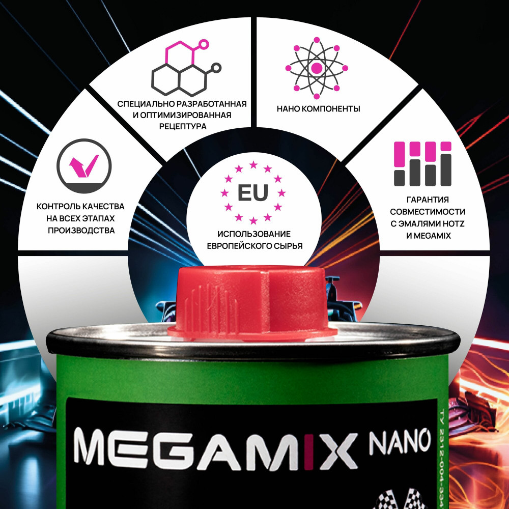 С помощью Mega Mix вы сможете достигнуть отличных результатов, обеспечивая вашему автомобилю привлекательный и защищенный внешний вид. Используйте этот отвердитель для акриловых эмалей, чтобы продлить срок службы покрытия и сохранить свежесть цвета на долгие годы. Обладая высокой эффективностью и простотой в применении, этот продукт станет отличным дополнением к вашему арсеналу автотоваров.