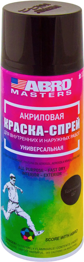 Краска-спрей коричневая аэрозоль — применяется для окраски металлических и деревянных поверхностей различных предметов как при внутренних (домашних), так и при наружных работах. После высыхания краска-спрей не токсична.