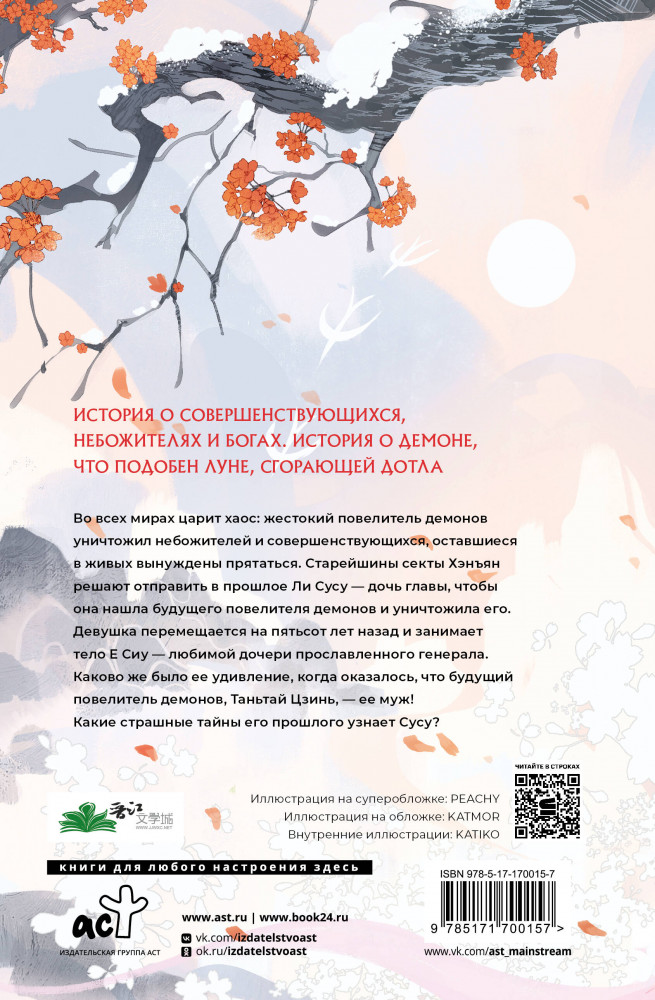 💳 Оплатить за товар можно при получении 🇰🇿 Есть бесплатная доставка по Казахстану 🎁 Копите бонусы с каждой покупки Серия: Хиты Китая. Светлый пепел луны Во всех мирах царит хаос: жестокий повелитель демонов уничтожил небожителей и совершенствующихся, оставшиеся в живых вынуждены прятаться. Старейшины секты Хэнъян решают отправить в прошлое Ли Сусу — дочь главы, чтобы она нашла будущего повелителя демонов и уничтожила его. Девушка перемещается на пятьсот лет назад и занимает тело Е Сиу — любимой дочери прославленного генерала. Каково же было ее удивление, когда оказалось, что будущий повелитель демонов, Таньтай Цзинь, — ее муж! |