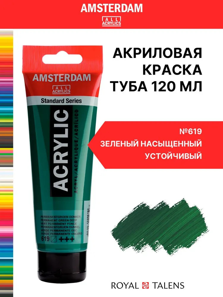 Royal Talens Краска акриловая в тубе, 619 Зеленый насыщенный устойчивый