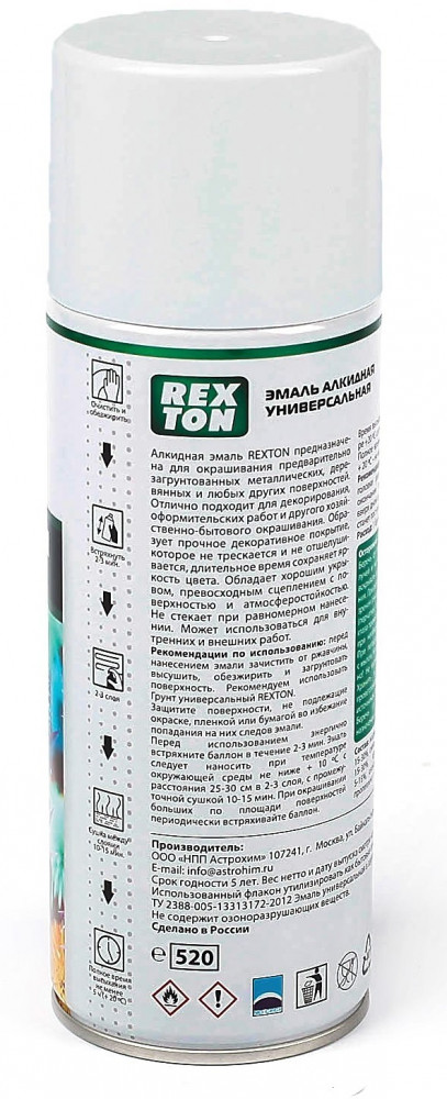 Краска-спрей универсальная белая глянцевая — алкидная эмаль, предназначена для окрашивания предварительно загрунтованных металлических, деревянных и любых других поверхностей. Отлично подходит для декорирования, оформительских работ и другого хозяйственно-бытового окрашивания. Образует прочное декоративное покрытие, которое не трескается и не отшелушивается, длительное время сохраняет яркость цвета. Обладает хорошим укрывом,превосходным сцеплением с поверхностью и атмосферостойкостью. Не стекает при равномерном нанесении. Может использоваться для внутренних и внешних работ.