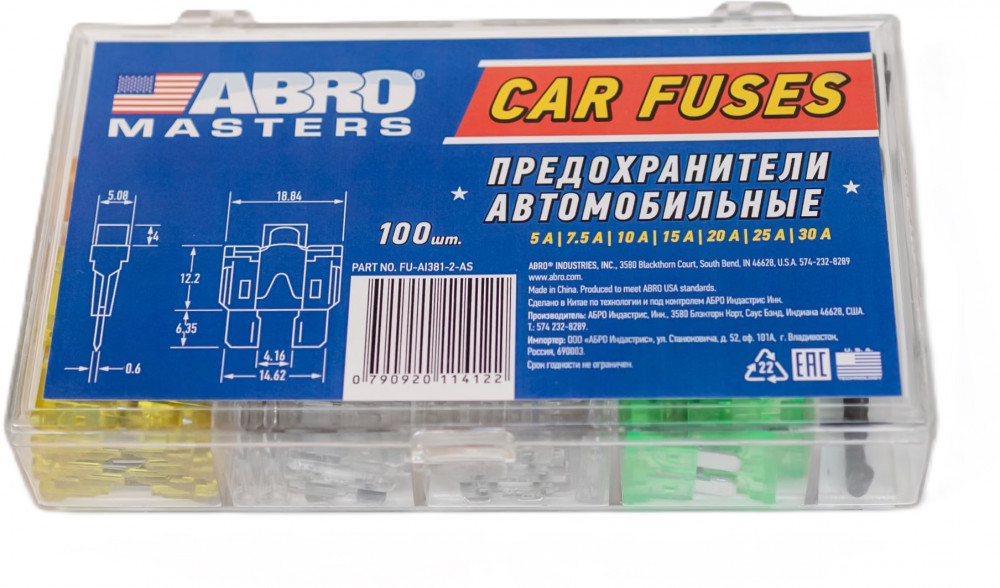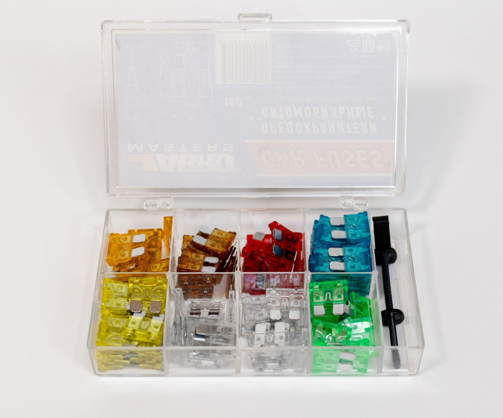 Предохранитель флажковый 5-30A ABRO MASTERS № 2 в пластиковой коробке с пинцетом набор 100 шт — выполняют защитную функцию. Предохранитель защищает электрическую цепь и её элементы от перегрева и возгорания при протекании высокой силы тока. Плавкая вставка из высококачественных сплавов внутри предохранителя ABRO плавится при превышении определенной величины тока, предотвращая короткое замыкание далее по электрическим цепям. Материал корпуса плавкого предохранителя изготовлен из термостойкой пластмассы, которая не плавится при нагреве до определённой температуры.
