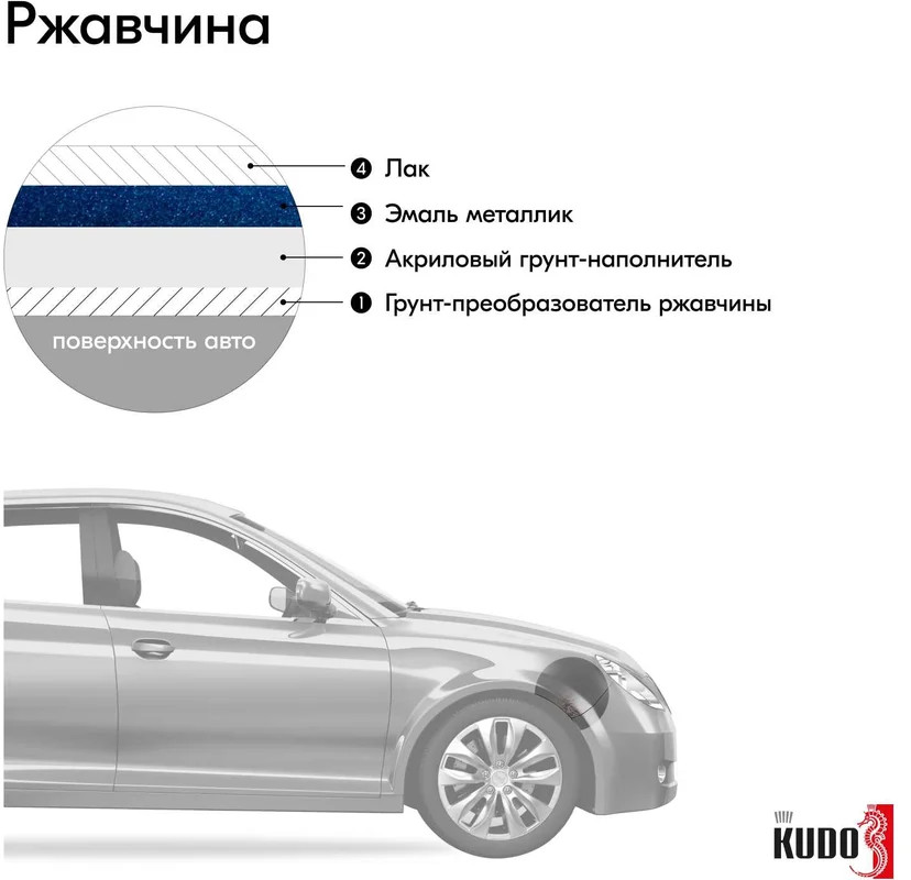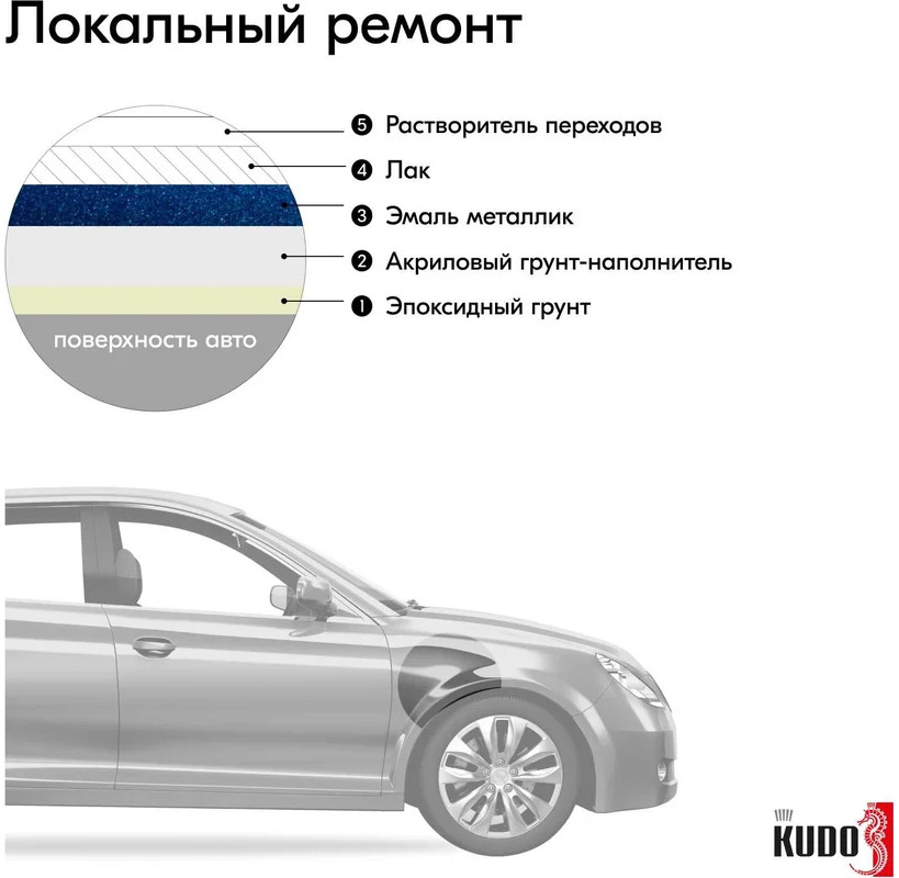 KUDO Эмаль автомобильная ремонтная «Металлик», оттенок 448 рапсодия