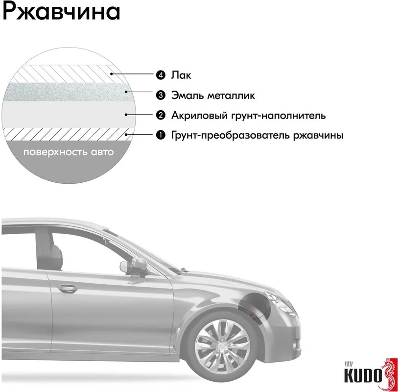 • эмаль не обладает поверхностной прочностью и атмосферостойкостью. Обязательно требуется нанесение защитного слоя прозрачного акрилового лака не ранее, чем через 15‑20 минут после нанесения последнего слоя эмали. Рекомендуется использовать автомобильный акриловый лак KUDO