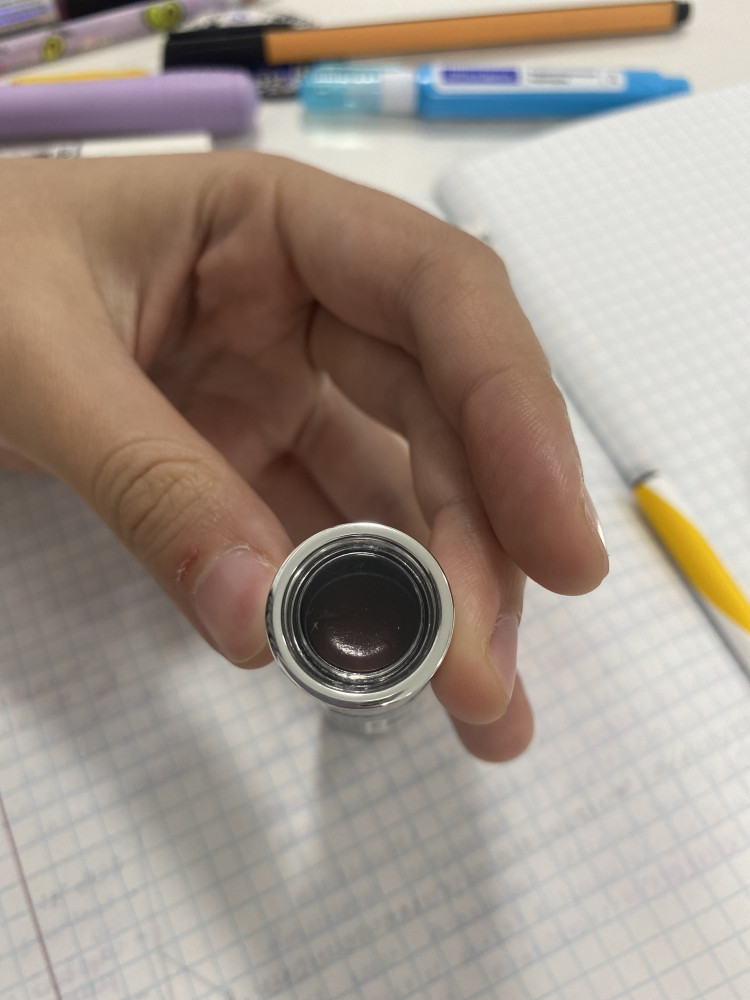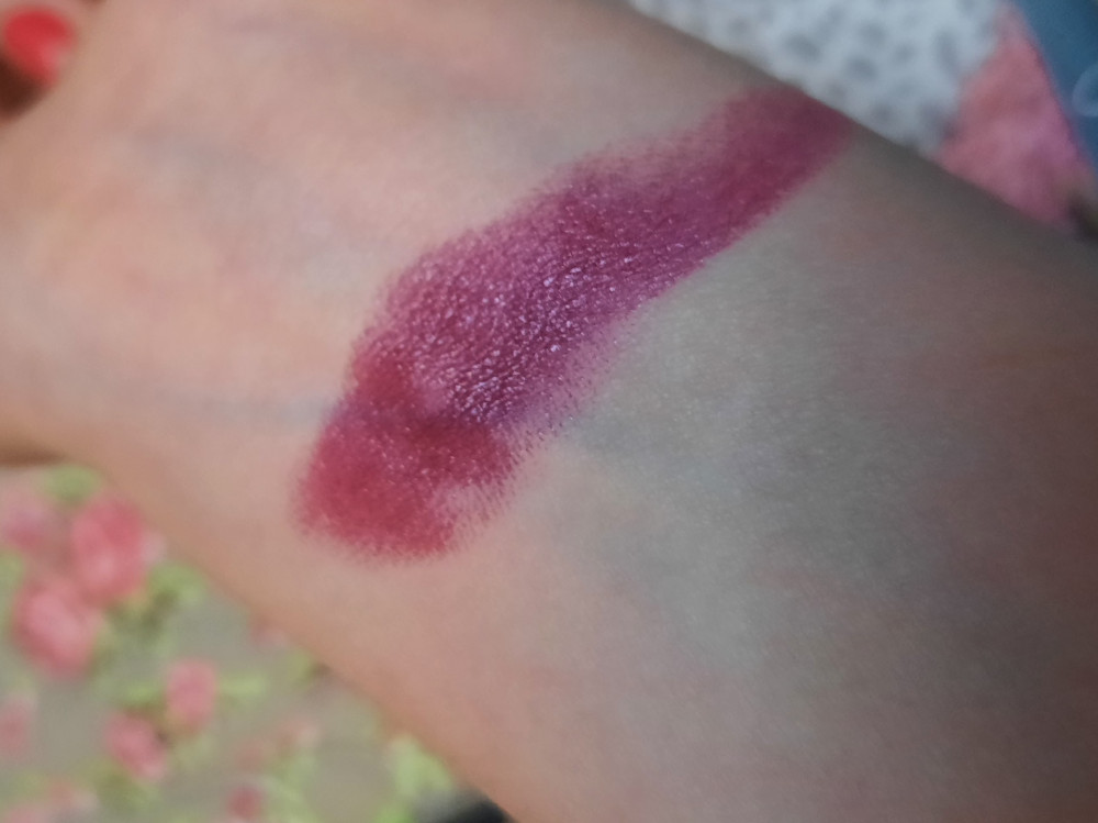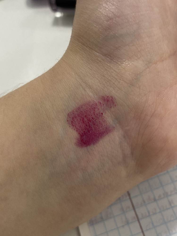 запах. хотя тут на любителя, но пахнет каким-то то ли химозным, то ли алкогольным(спиртным) запахом ягод..? не разобралась. со временем выветривается, но мне запах на 2.5/10 цвет. помада выглядит как на фото, пока не нанесешь на кожу или губы. на губах это бордово-фиолетовая помада, прям фиолетовит. жалко что не как на фото, но мне норм размер. помады внутри меньше чем кажется. вот как у них на фото показано, на сколько выдвинута - это максимум. может там внутри есть ещё, но я ещё не дошла до конца. она не высыхает от слова вообще. очень легко съедается. но в целом я этого ожидала