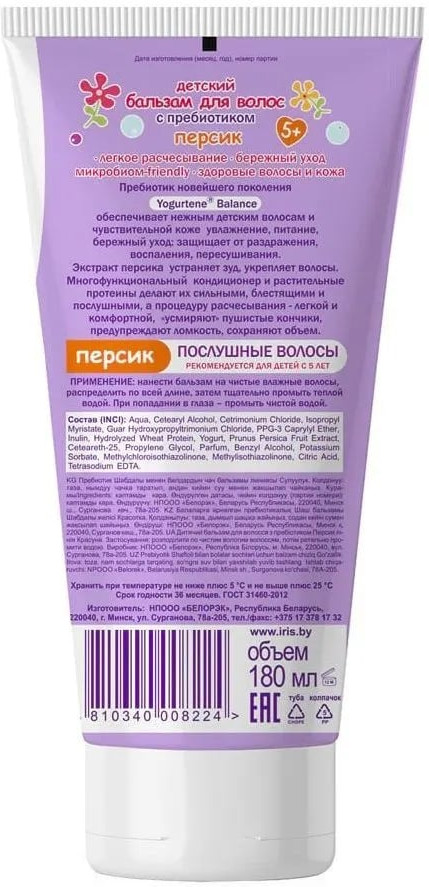 Iris Cosmetic Бальзам для волос с пребиотиком «Персик»