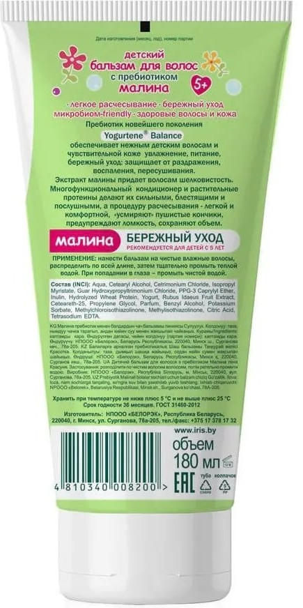 Iris Cosmetic Бальзам для волос с пребиотиком «Малина»