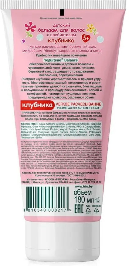 Iris Cosmetic Бальзам для волос с пребиотиком «Клубника»