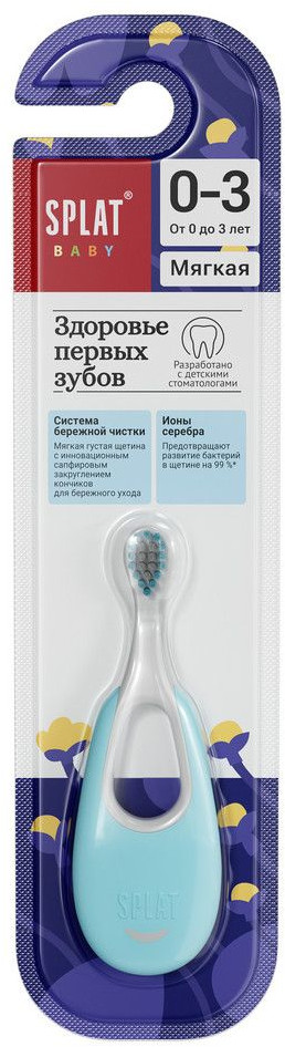 Splat Baby зубная щетка с ионами серебра мягкая. Бережный уход за первыми зубками вашего малыша. Мягкая густая щетина бережно очищает эмаль первых зубов и обеспечивает. Деликатный массаж десен.