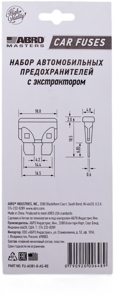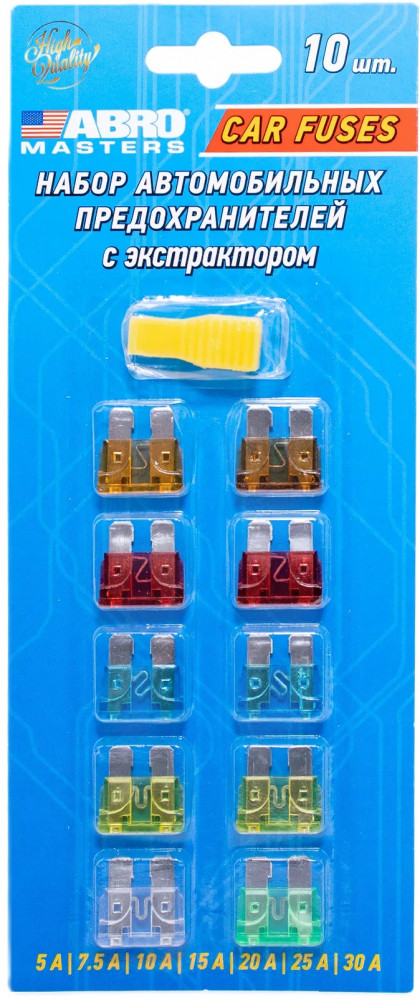 Предохранитель флаж. 5-30A ABRO Masters № 8 набор 10 шт блистер — выполняют защитную функцию. Предохранитель защищает электрическую цепь и её элементы от перегрева и возгорания при протекании высокой силы тока. Плавкая вставка из высококачественных сплавов внутри предохранителя ABRO плавится при превышении определенной величины тока, предотвращая короткое замыкание далее по электрическим цепям. Материал корпуса плавкого предохранителя изготовлен из термостойкой пластмассы, которая не плавится при нагреве до определённой температуры.