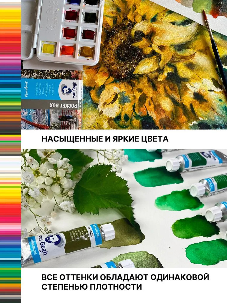 Коллекция акварельных красок «Van Gogh» — это акварель, которая произведена из высококачественных сконцентрированных пигментов сверхтонкого помола и чистого гуммиарабика без лишних примесей. Акварель «Van Gogh» выбирают многие профессиональные художники, вместе с тем, с ней легко работать и начинающим живописцам. Выпускается с 1963 года, под строгим контролем качества компанией Royal Talens.