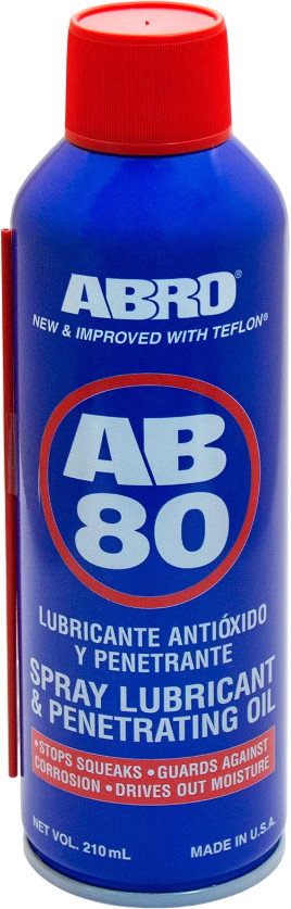 Смазка проникающая ABRO 210 мл аэрозоль — многоцелевая проникающая аэрозольная смазка высшего качества для применения при ремонте и уходе за автомобильной, промышленной, морской и иной техникой. Эффективно снижает трение, облегчает работу деталей в условиях экстремальных нагрузок и продлевает срок службы смазываемых деталей. Обладает прекрасными водовытесняющими свойствами, не загрязняет обрабатываемые металлические поверхности и предохраняет их от появления ржавчины. Мокрые после очистки или мытья детали быстро и эффективно осушаются обработкой AB-800. После обработки образуется ультратонкий слой, надежно защищающий черные металлы от коррозии даже в условиях высокой влажности. Прилагаемая трубочка облегчает обработку труднодоступных мест.