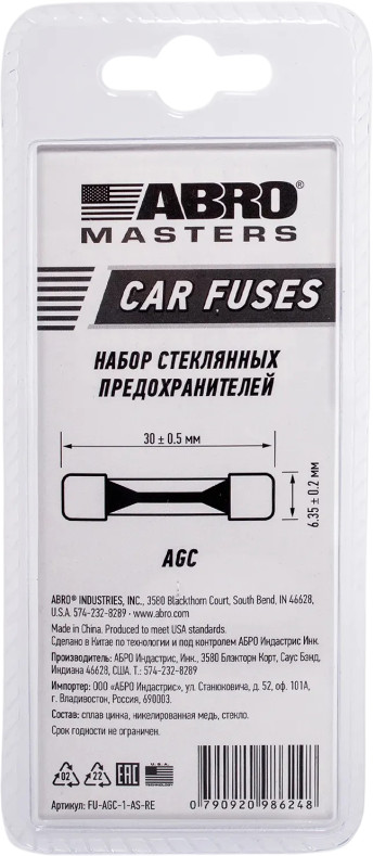 ABRO Набор стеклянных предохранителейВ данный момент этот товар отсутствует в продаже. Возможно, у нас найдется аналогичный или похожий товар здесь. Серия: Masters Предохранитель стеклянный цилиндрический (AGC:10,15,30A) ABRO MASTERS набор 6 шт. — предназначен для защиты электрической цепи и ее элементов от короткого замыкания при превышении номинального тока цепи. Легкоплавкий проволочный элемент размещен внутри стеклянного корпуса. |