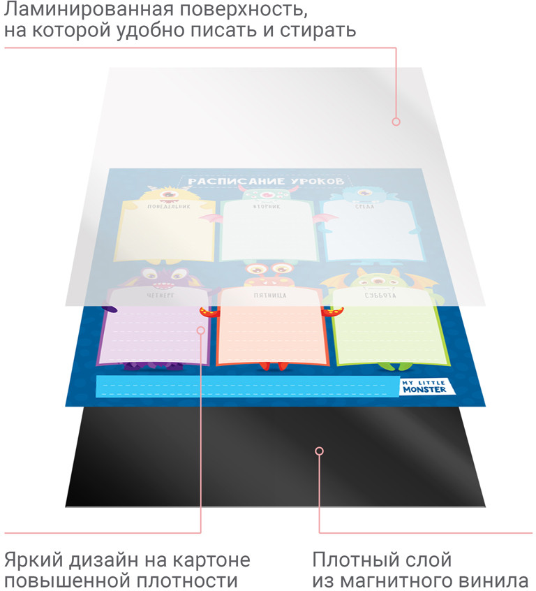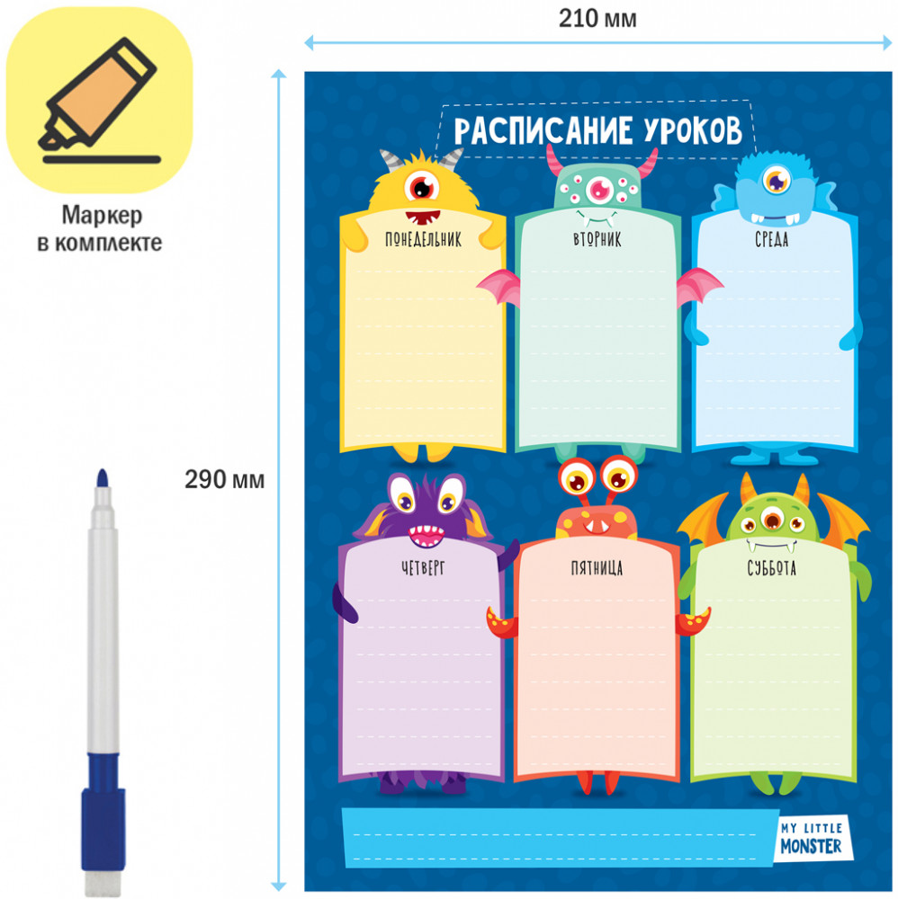 ArtSpace Планер магнитный «Расписание уроков»В данный момент этот товар отсутствует в продаже. Возможно, у нас найдется аналогичный или похожий товар здесь. Серия: Пиши-стирай Многоразовый магнитный планер ArtSpace «Пиши-Стирай. Монстрики» поможет школьнику придерживаться распорядка дня, рационально распределять нагрузку. Изделие формата А4 (210 × 290 мм) сделано из картона плотностью 200 г/м² с ламинацией и магнитного винила. Глянцевая поверхность позволяет многократно вносить в расписание изменения при помощи маркера на магните со стирателем, который входит в комплект. Он крепится к любой металлической поверхности, например, к холодильнику. |