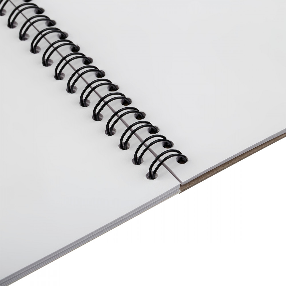 Внутренний блок состоит из 50 белых листов. Плотность бумаги — 90 г/м². Благодаря твёрдой обложке и переплёту на гребне зарисовки можно делать даже на весу. Скетчбук раскрывается на 360 градусов: его легко перелистывать и открывать в нужном месте.