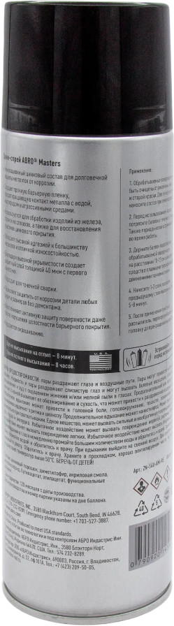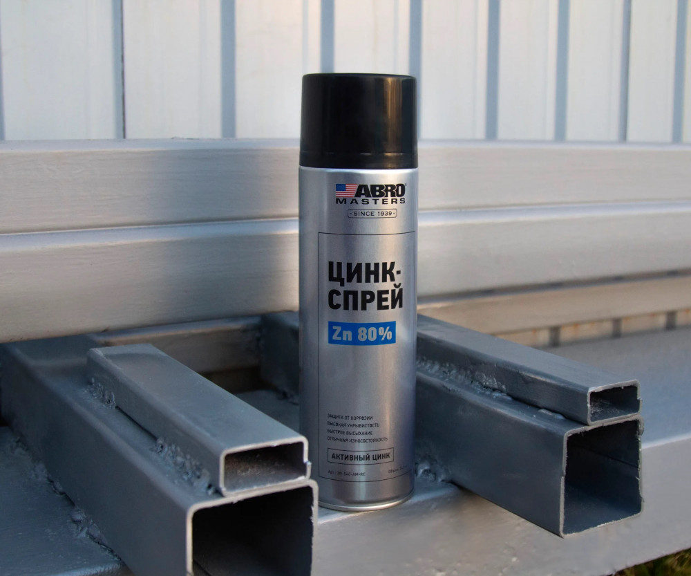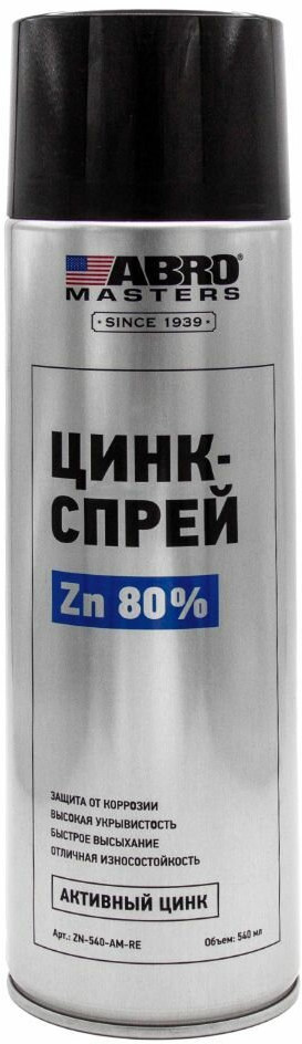 Преобразователь ржавчины «Цинк-спрей» ABRO Masters 540 мл — инновационный цинковый состав для долговечной защиты металлов от коррозии. Используется для обработки изделий из железа, стали и их сплавов, а также для восстановления участков цинкового покрытия.