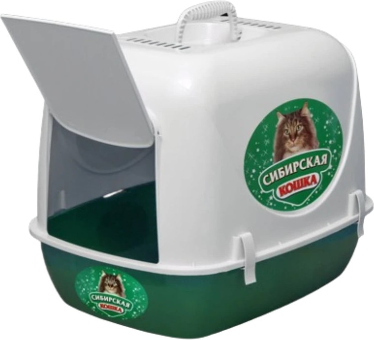 неплохая вещь, рабочая, по габаритам большая, но у нас поместилась. пока без дверцы, кошка быстро привыкает. приехал грязный - мне кажется, это угольная пыль осела на стенках при транспортировке, но мы помыли, влажными салфетками отчистили. но не понравилось, что зеленые вот эти большие наклейки с брендом на обеих белых стенках, как ни поверни, аляписто смотрится в продуманном интерьере, достаточно было бы и одной. а убрать трудно, наклеена почти намертво.