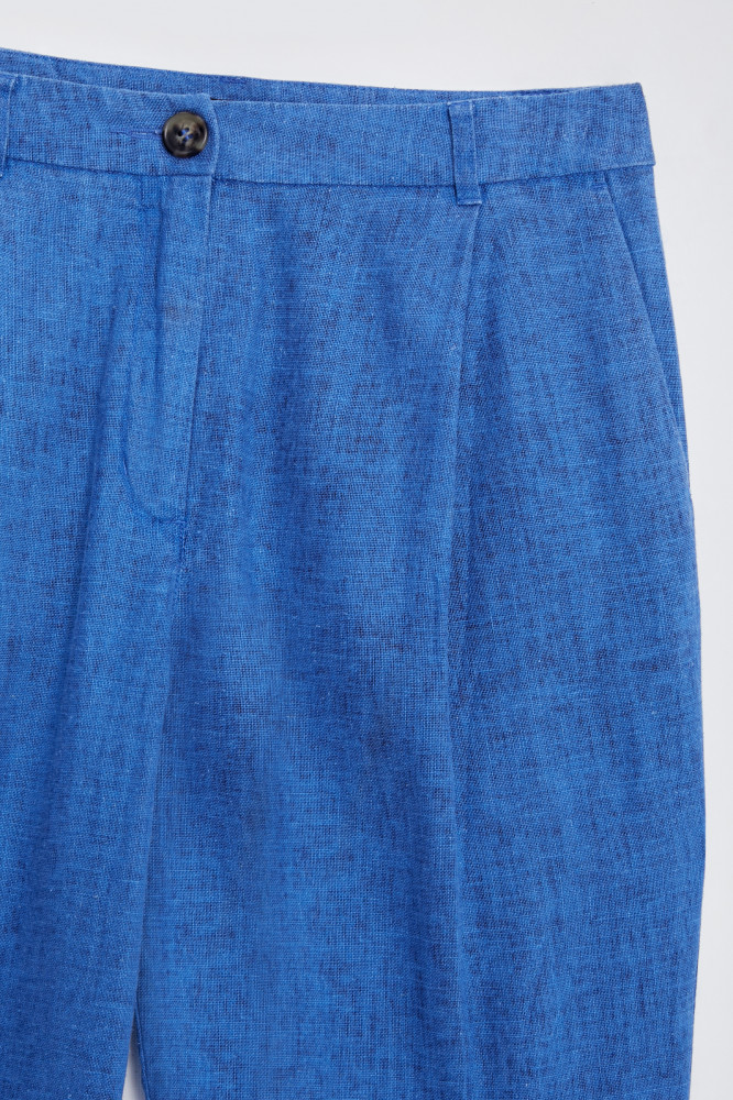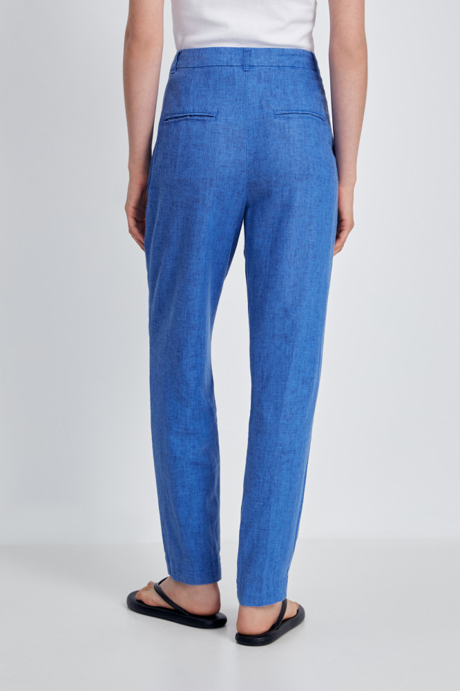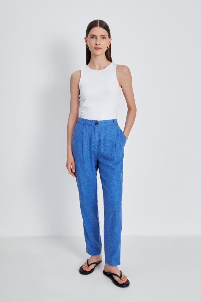 Льняные женские брюки — tapered fit. Модель хорошей посадки: зауженная — к низу, свободная — на бедрах. Актуальные, стильные брюки — отлично впишутся во все офисные образы, удобны для прогулок и активного отдыха, в них комфортно на встрече с друзьями. Сшиты из качественного, приятного на ощупь смесового материала (70% вискоза, 30% лен), дополнены хорошей фурнитурой. Неприхотливы в уходе, легко стираются в машине.