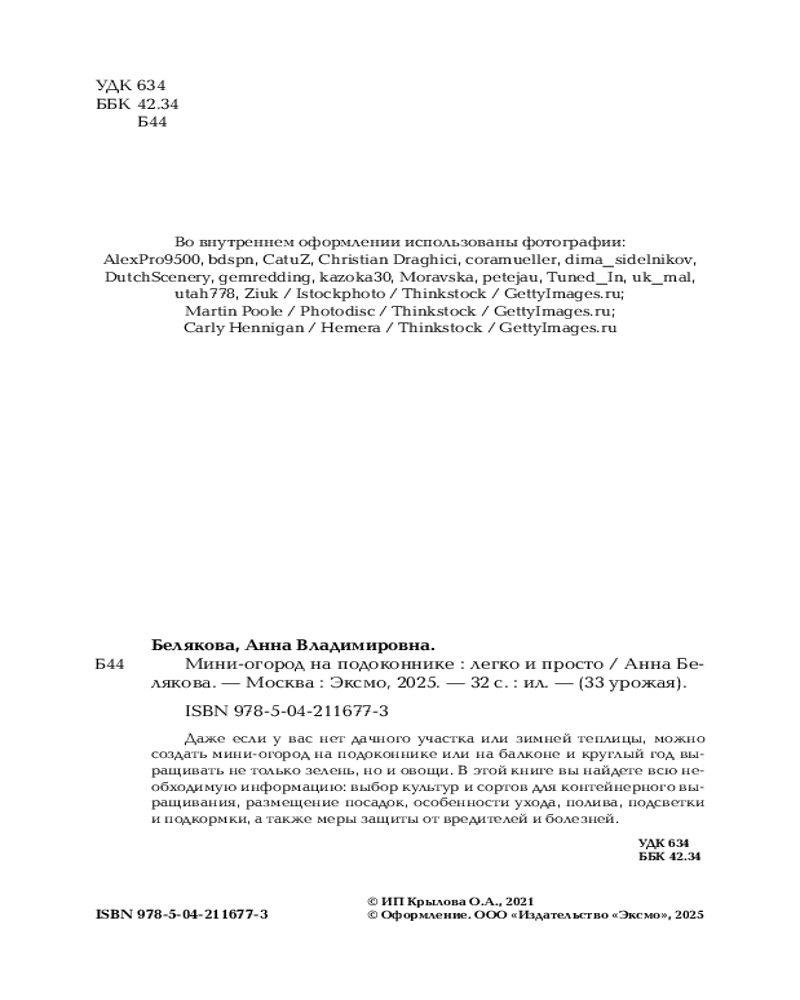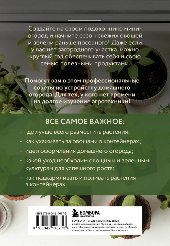 В данный момент этот товар отсутствует в продаже. Возможно, у нас найдется аналогичный или похожий товар здесь. Серия: 33 урожая (2025) Для тех, кто хочет создать на своем подоконнике, балконе или лоджии мини-огород и круглый год обеспечивать себя и свою семью полезной зеленью и даже овощами. В этой книге коротко и пошагово изложены профессиональные советы по устройству домашнего огорода.