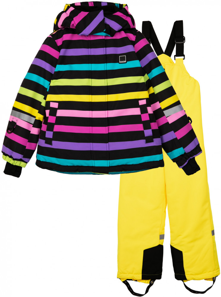 Зимний комплект из мембранной ткани 5000×5000. Линия Nord — высокая степень теплозащиты. Температурный режим до −25С. Подкладка — флис. Материал верха с ветрозащитным и водоотталкивающим покрытием. Внутренняя и внешняя ветрозащитные планки. Два боковых кармана на липучке. Эластичные манжеты на рукавах с отверстием для большого пальца. Полукомбинезон на молнии. Силиконовые штрипки. Светоотражающие элементы.