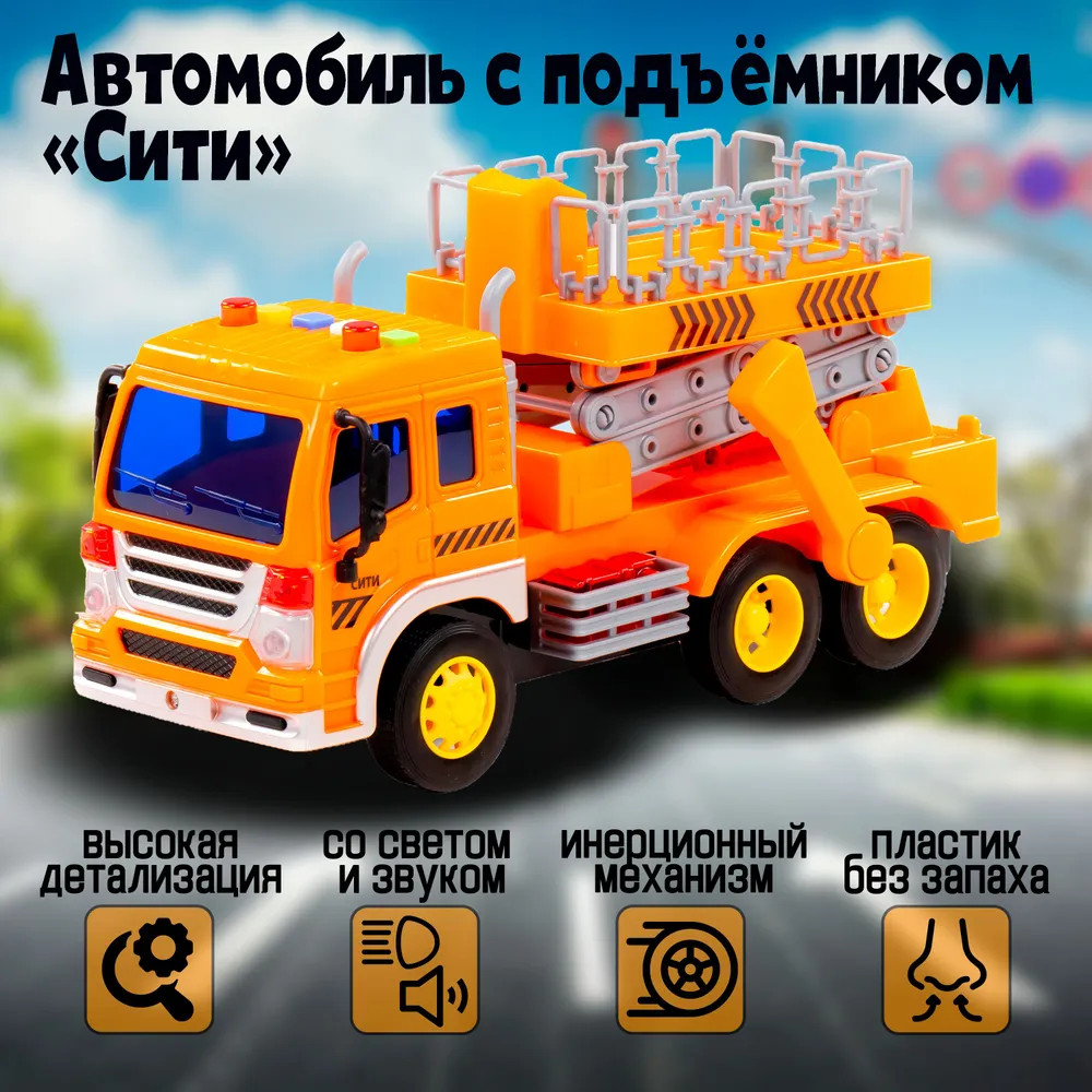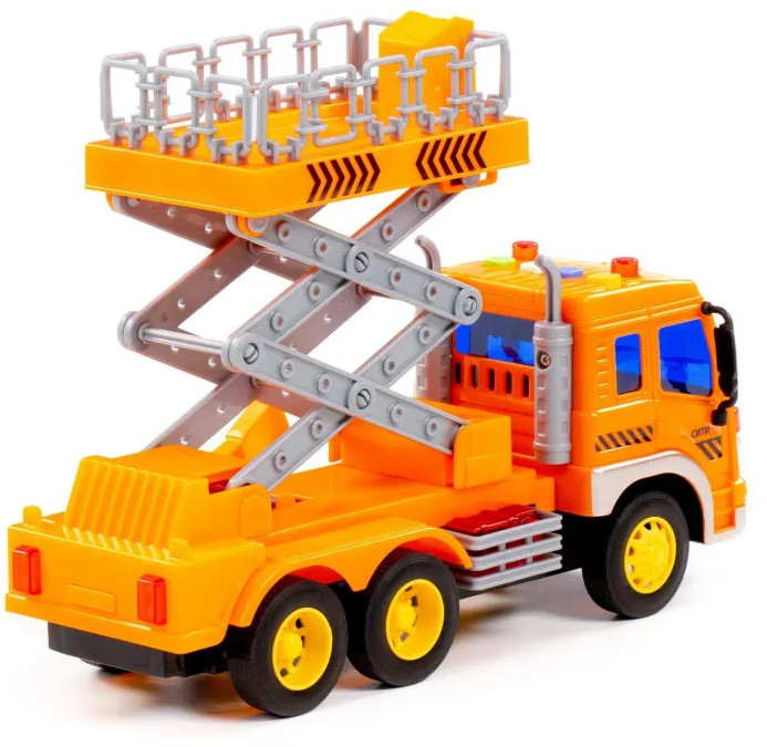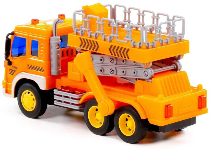 Полесье Автомобиль с подъёмником инерционный «Сити»В данный момент этот товар отсутствует в продаже. Возможно, у нас найдется аналогичный или похожий товар здесь. Автомобиль с подъёмником инерционный «Сити» от фабрики «Полесье» — это качественная реалистичная игрушка, конструкция которой полностью повторяет дизайн настоящей техники. Спецмашина имеет три пары колёс на металлических осях, кроме того, она оснащена подъёмным механизмом, который позволит придумывать различные сценарии игры. На кабине авто имеется 4 кнопки управления звуковыми и световыми эффектами. |