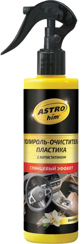 Полироль-очиститель пластика глянцевый Ваниль спрей — эффективное средство для ухода за пластиковыми, виниловыми и резиновыми элементами внутренней и внешней отделки автомобиля. Качественно очищает, значительно обновляет внешний вид любого пластика, питает резиновые детали отделки, защищая от растрескивания и пагубного влияния ультрафиолетового излучения.