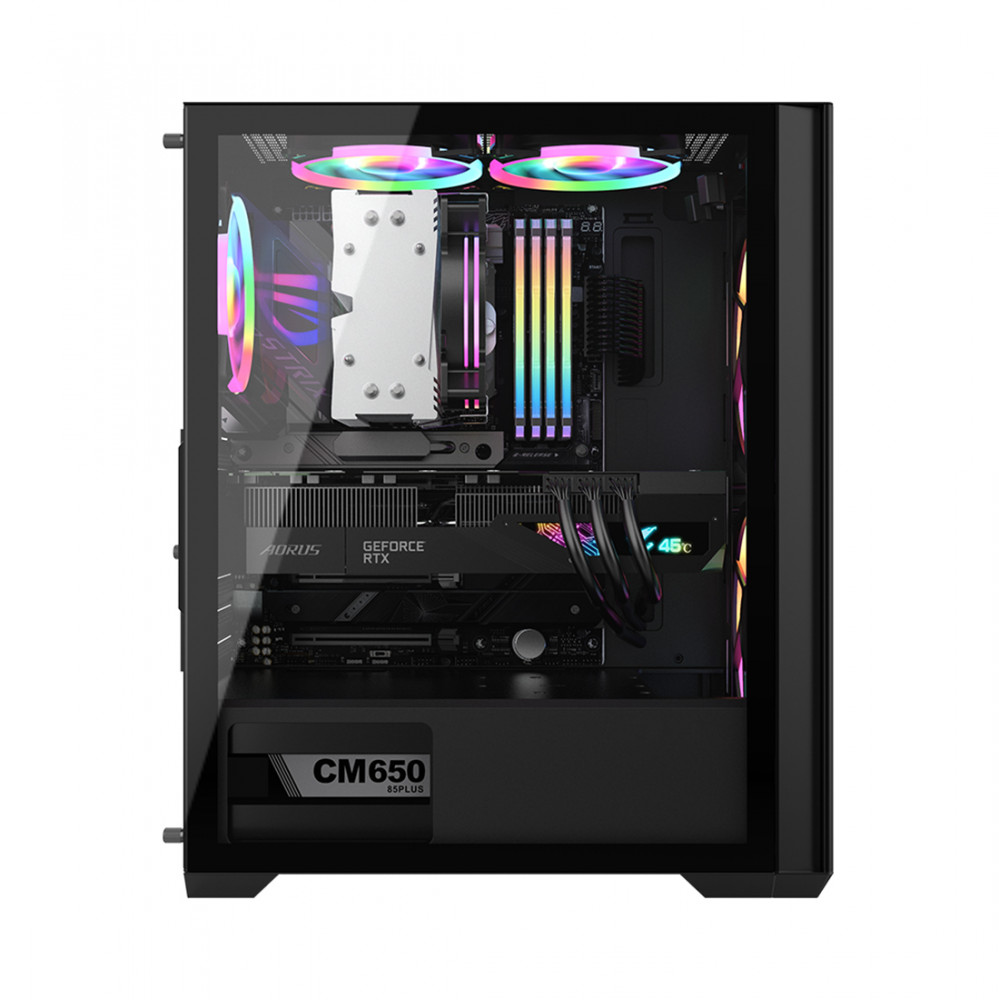 Полностью черный корпус Air Power G5 DUO отличается исключительной функциональностью благодаря своей вместительности. Боковая панель выполнена из закаленного стекла. Кроме того в корпусе уже предустановленно три вентилятора RGB. Корпус Air Power G5 DUO оснащен передней и верхней панелью сетчатой фильтрации для более тонкой очистки и циркуляции воздуха для качественного охлаждения. В общей сложности 3 предустановленных вентилятора RGB обеспечивают высокую производительность воздушного потока, гарантируя, что система получает первоклассную охлаждающую способность. Корпус позволяет разместить до 6-ти вентиляторов.