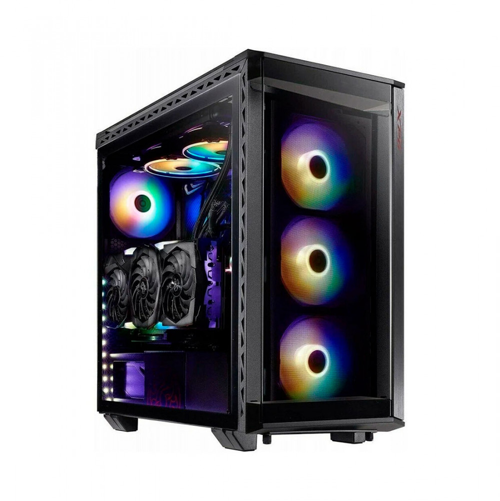 XPG BATTLECRUISER — потрясающе красивый корпус ПК формата «средняя башня» (super mid tower), состоящий из прочного металлического каркаса с четырьмя боковыми панелями из закаленного стекла. К принципиально новым улучшениям относятся четыре предустановленных вентилятора ARGB с 13 световыми режимами, включая режим "Синхронизация музыки".