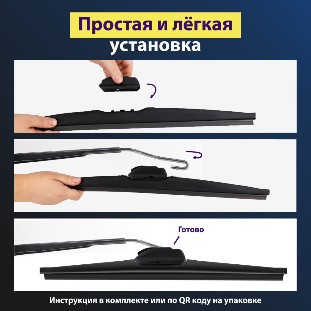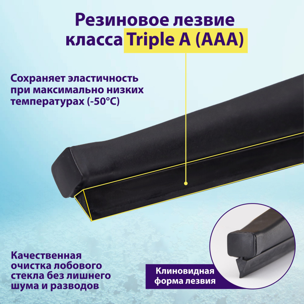 Зимняя щетка стеклоочистителя Goodyear «Winter Premium» разработана специально под суровые зимние условия. Резиновое лезвие Triple A (ААА) сохраняет свою эластичность даже при экстремально низкой температуре до — 50°С. Клиновидная форма лезвия с высоким профилем обеспечивает качественную очистку лобового стекла даже в условиях обильного снегопада. Благодаря графитовому покрытию щетки стеклоочистителя работают бесшумно.