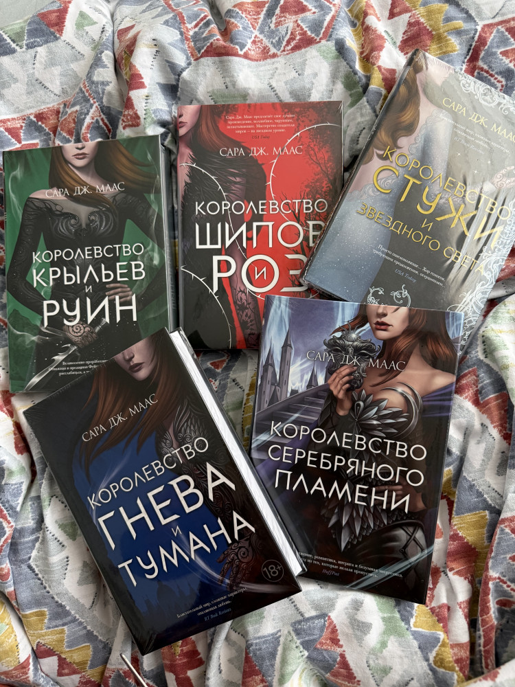Цикл «Королевство шипов и роз». Комплект из 5 книгбумага белая шрифт средний состояние книг В данный момент этот товар отсутствует в продаже. Возможно, у нас найдется аналогичный или похожий товар здесь. В данном цикле под названием «Королевство шипов и роз» 5 книг — «Королевство шипов и роз», «Королевство гнева и тумана», «Королевство крыльев и руин», «Королевство стужи и звездного света», «Королевство серебряного пламени» — автора Сары Дж. Маас про отважную и преданную героиню Фейру. |