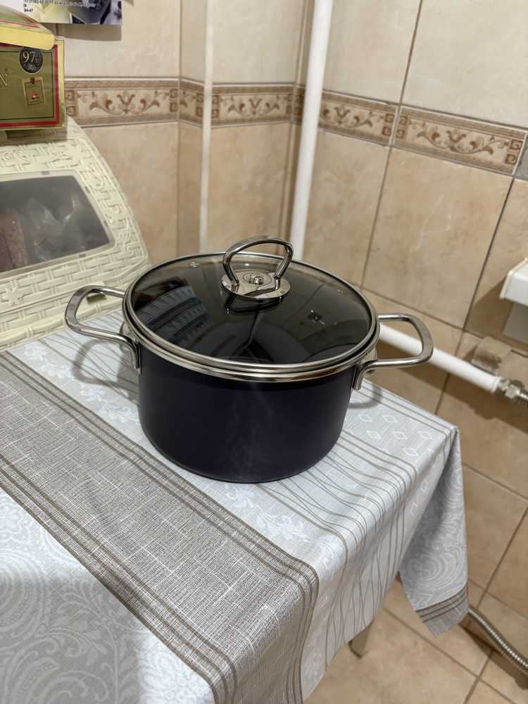 Красивая кастрюля, внутри черная эмаль. Тяжеленькая.