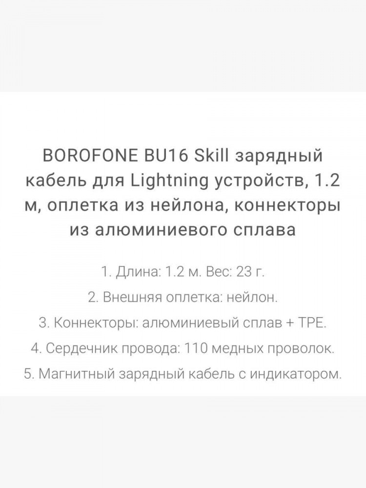 💳 Оплатить за товар можно при получении 🇰🇿 Есть бесплатная доставка по Казахстану от 1 дня 🎁 Копите бонусы с каждой покупки USB Lightning — магнитный кабель для зарядки и передачи данных, совместимый с устройствами с разъемом Lightning. Особенность данного провода — магнитный коннектор, который один раз вставляется в разъем устройства, и затем, лишь примагничивается к проводу. Таким образом, разъем гаджета защищен от износа, попадания влаги и пыли. На коннекторе есть индикатор, который светиться мягким голубым светом во время зарядки. Плотная нейлоновая оплетка, коннекторы из алюминиевого сплава обеспечивают долгий срок службы кабеля. Вращение: 360 градусов, сечение кабеля — круглое в нейлоновой оплётке. Длина кабеля: 120 см. |