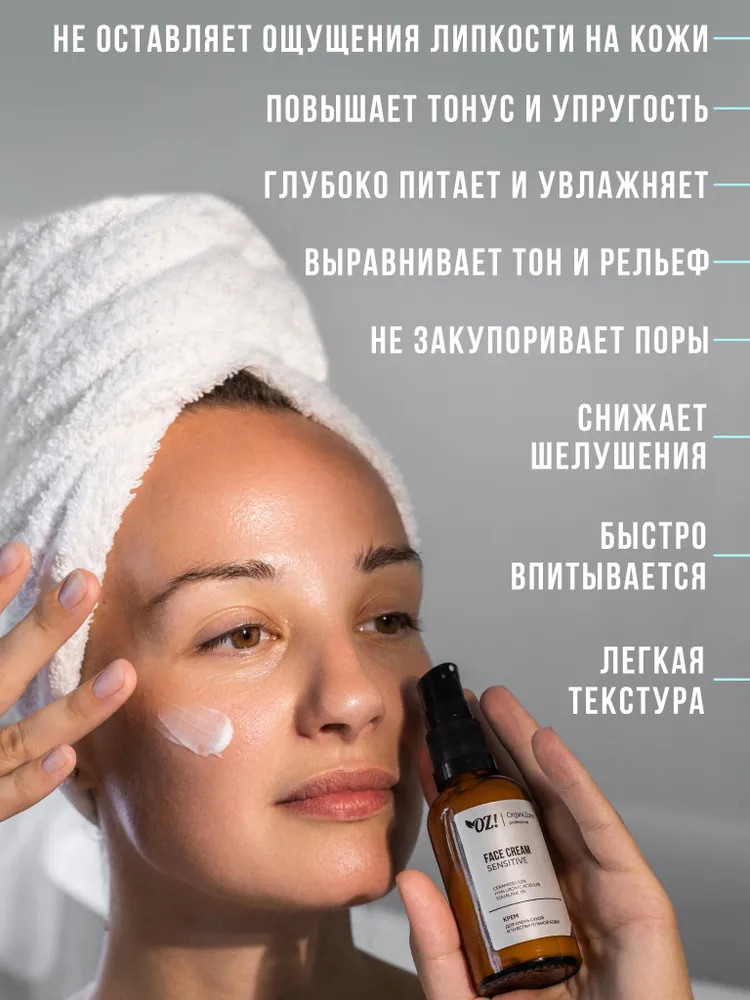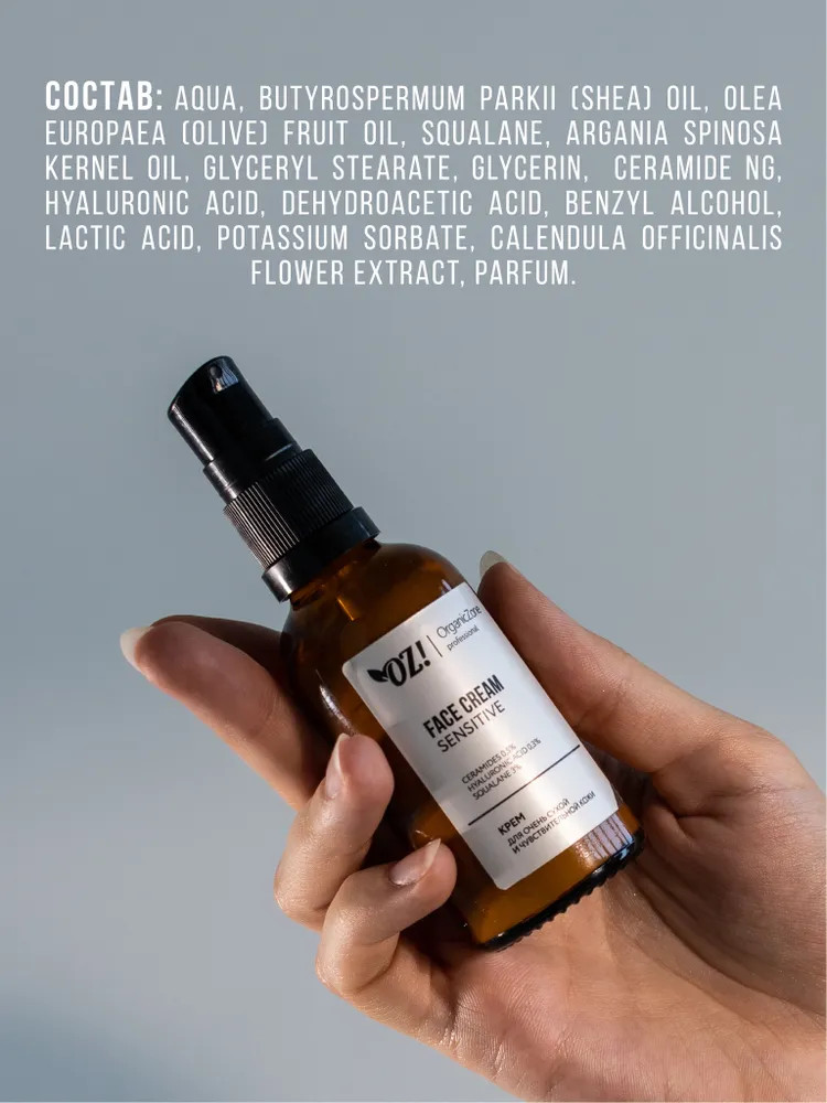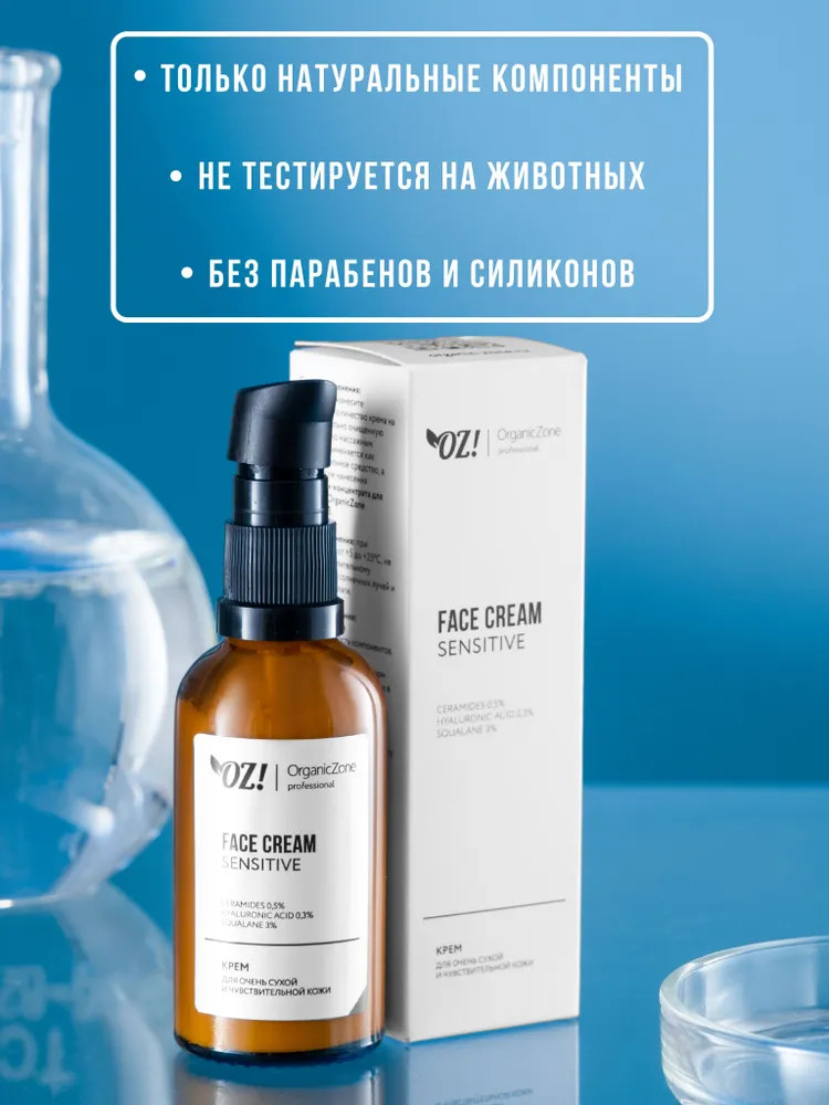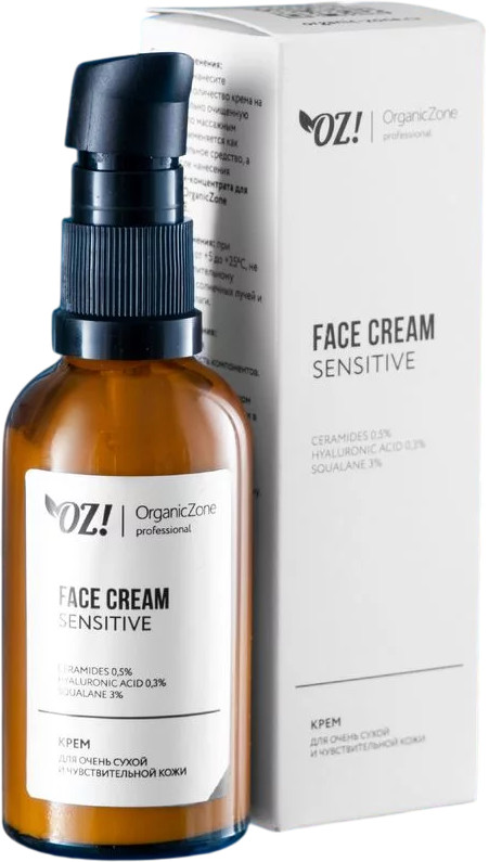 Organic Zone Крем для лица с церамидами, гиалуроновой кислотой и скваланом «Sensitive»