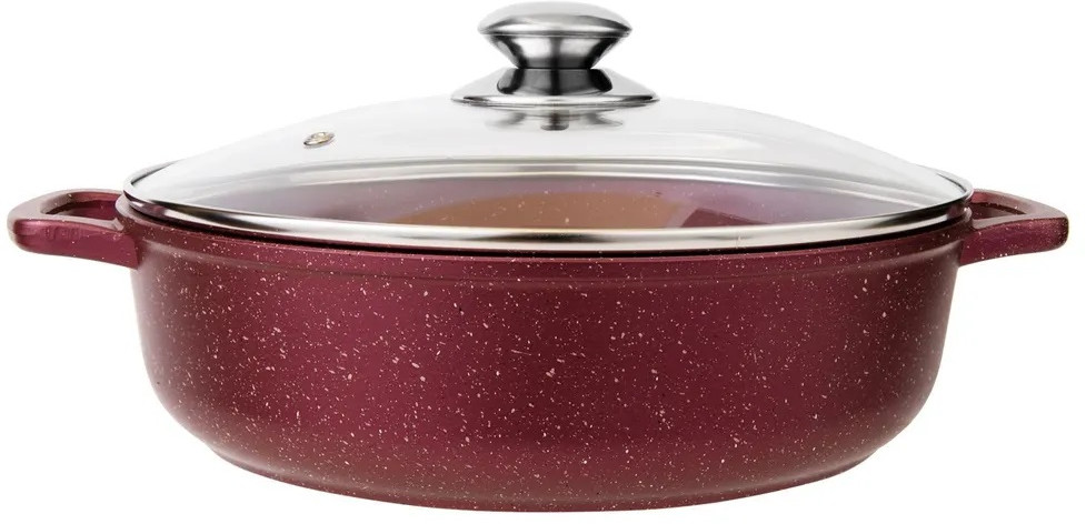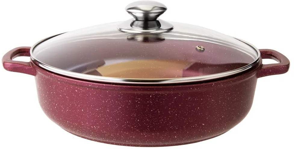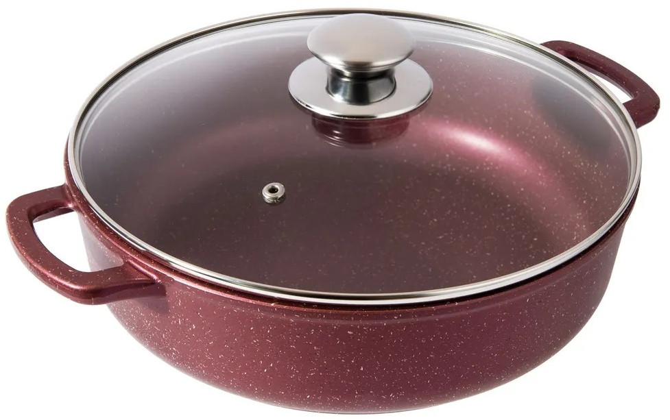 💳 Оплатить за товар можно при получении 🇰🇿 Есть бесплатная доставка по Казахстану от 1 дня 🎁 Копите бонусы с каждой покупки Серия: Рубин Жаровня со стеклянной крышкой серии «Рубин» изготовлена из литого алюминия, что обеспечивает равномерное распределение тепла для идеального приготовления блюд. В этой серии использованы эксклюзивный корпус и современное безопасное антипригарное покрытие нового поколения. Жаровня идеально подходят для жарки, обжаривания, тушения, а также для запекания в духовке со стеклянной крышкой (до 220°С). Жаровня имеет эргономичный литой корпус диаметром 26 см и объемом 2.7 литра. Оснащена индукционным дном и возможностью использования на всех типах плит, включая газовые, электрические и даже индукционные, она станет незаменимым предметом на вашей кухне, ведь она способна заменить сковородку, кастрюлю и форму для запекания. |
