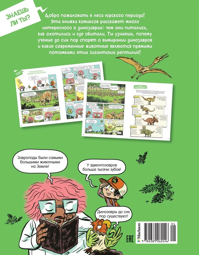 💳 Оплатить за товар можно при получении 🇰🇿 Есть бесплатная доставка по Казахстану от 1 дня 🎁 Копите бонусы с каждой покупки Серия: Комиксы для почемучек Добро пожаловать в леса юрского периода! Эта книжка комиксов расскажет много интересного о динозаврах: чем они питались, как охотились и где обитали. Ты узнаешь, почему ученые до сих пор спорят о вымирании динозавров и какие современные животные являются прямыми потомками этих гигантских рептилий! |