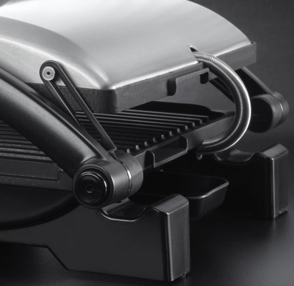 Russell Hobbs Гриль 17888-56В данный момент этот товар отсутствует в продаже. Возможно, у нас найдется аналогичный или похожий товар здесь. Этот универсальный прибор имеет три различные функции — его можно использовать в горизонтальном положении для пресса для панини; под углом для гриля с низкими решетками; или на 180° для открытой сковороды. Пластины с антипригарным покрытием также легко чистить.Матовая нержавеющая сталь. Есть решетка на 5 порций для приготовления мяса и овощей. Открывается на 180° в положение открытой сковороды. Имеется встроенный поддон для сбора излишков жидкости и легкоочищаемые пластины с антипригарным покрытием. И так же регулируемый шарнир для равномерного приготовления пищи. |