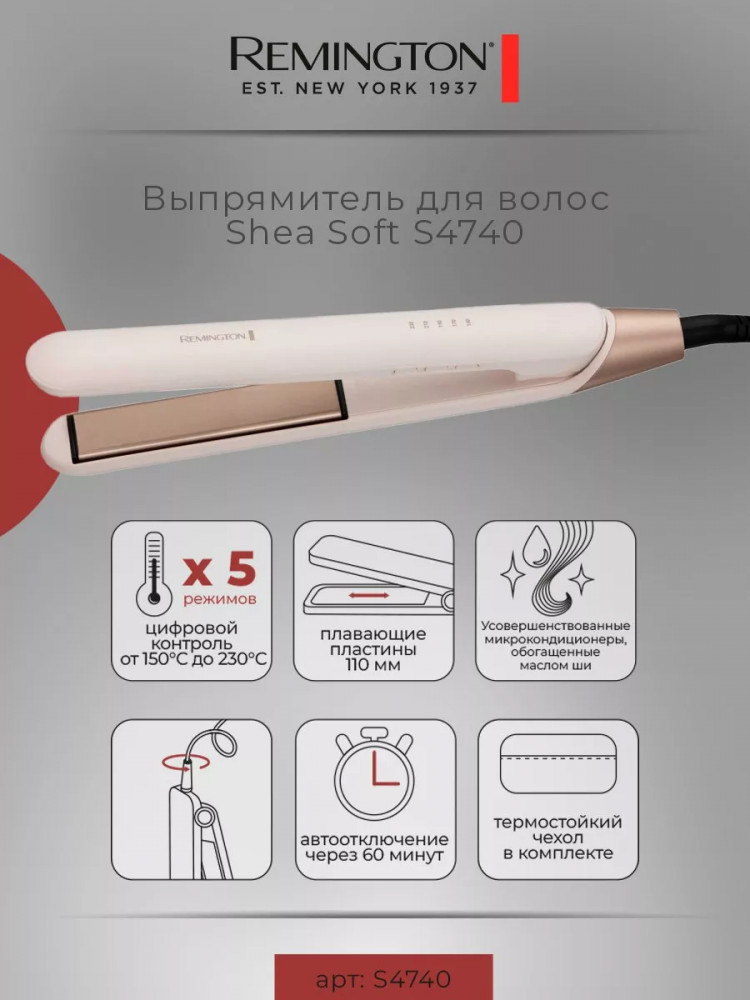 Выпрямитель для волос Remington S4740 E51 Shea Soft эффективно ухаживает за внешним видом волос, поддерживает здоровье ваших локонов. Быстрое нагревание утюжка для волос всего за 15 секунд позволяет начать процесс укладки практически мгновенно. Среди ключевых особенностей плойки выпрямителя Ремингтон стоит отметить усовершенствованные пластины с керамическим покрытием и интегрированными микрокондиционерами, обогащенными маслом ши. Эти пластины равномерно распределяют тепловую энергию по всей длине волос, предотвращая их перегрев и повреждение.