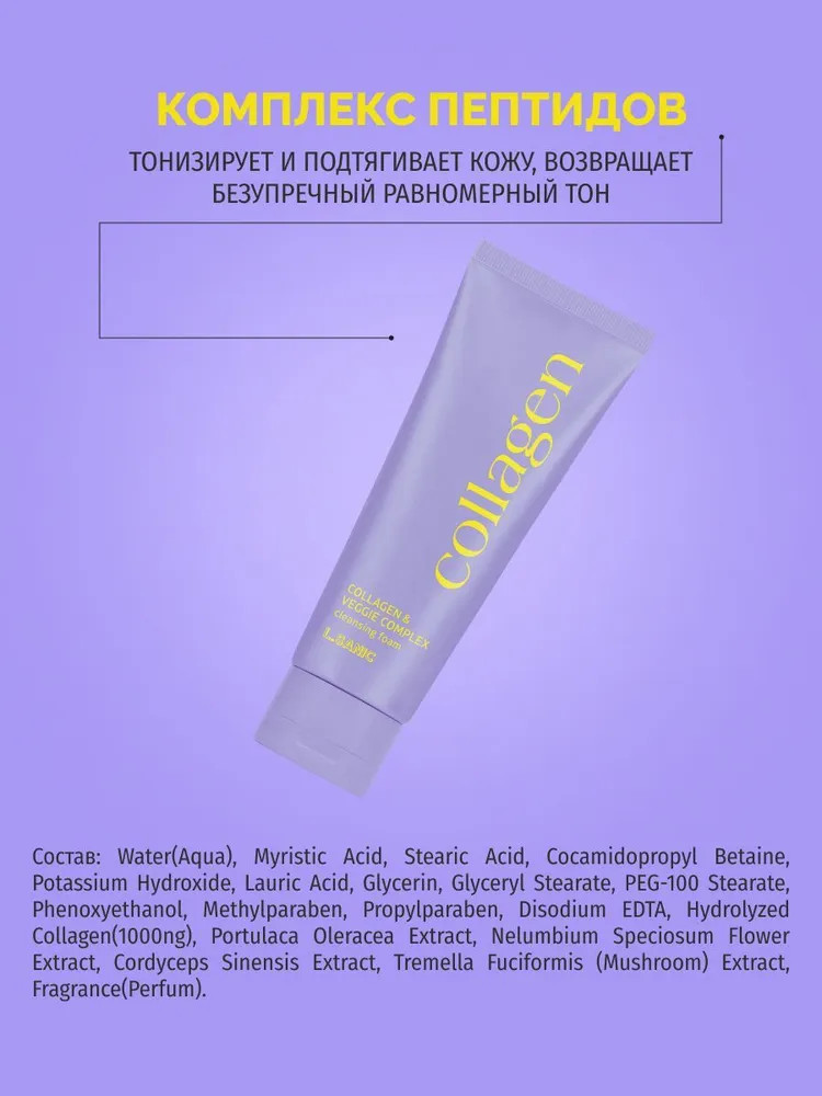 L.Sanic Пенка для лица с коллагеном и растительным комплексом «Lifting Collagen and Veggie Complex Cleansing Foam»