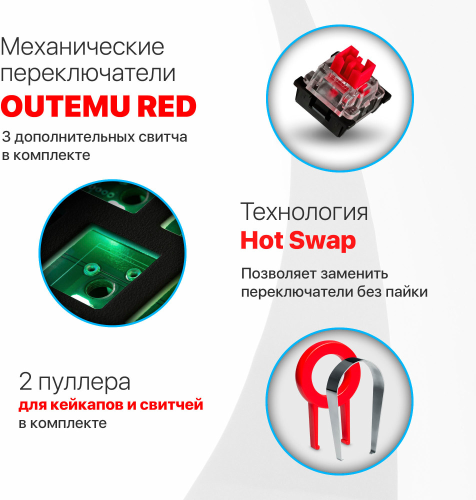 💳 Оплатить за товар можно при получении 🇰🇿 Есть бесплатная доставка по Казахстану от 1 дня 🎁 Копите бонусы с каждой покупки Ультракомпактная проводная механическая клавиатура на тихих красных свитчах Outemu. Ключевые достоинства модели: 19 режимов радужной подсветки, технология anti-ghost (все клавиши), возможность замены свитчей благодаря технологии Hot Swap. В комплект входят три дополнительных свитча, а также и пуллеры для кейкапов и свитчей. |