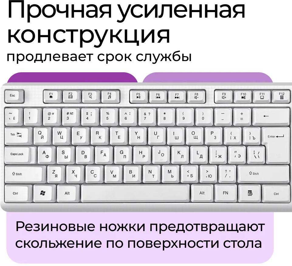 💳 Оплатить за товар можно при получении 🇰🇿 Есть бесплатная доставка по Казахстану от 1 дня 🎁 Копите бонусы с каждой покупки Стильный и удобный проводной офисный набор белого цвета. Бесшумные клавиши клавиатуры и кнопки мыши — главное достоинство этого набора. У клавиатуры классическая раскладка с увеличенными клавишами Ctrl, Shift, Enter и BackSpace. Мышка имеет радужную подсветку, 3 режима разрешения и симметричный корпус, удобный для работы любой рукой. |