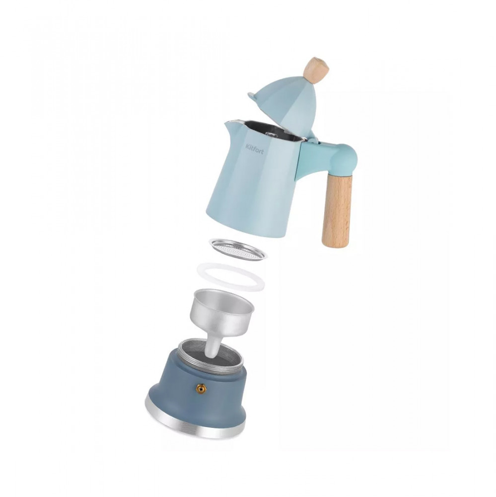 Каждая гейзерная кофеварка рассчитана на приготовление определённого количества чашек кофе. Объем резервуара и фильтра подобраны так, что воронку с фильтром наполняют молотым кофе полностью, а в резервуар для воды наливают столько воды, чтобы уровень воды был чуть ниже парового клапана. Таким образом вы получаете вкусный кофе и нет необходимости отмерять точное количество воды или молотого кофе в граммах. В воронку с фильтром кофеварки KT-7148 помещается около 20 грамм кофе, а емкость резервуара для воды — 200 мл. Она рассчитана на приготовление 3 чашек кофе по 40 мл.