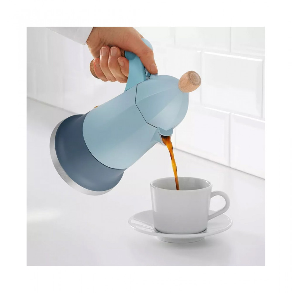 Принцип работы гейзерной кофеварки прост. В резервуар для воды наливают воду, затем на него устанавливают воронку с фильтром, куда добавляют молотый кофе. Сверху накручивается резервуар для кофе. Затем гейзерную кофеварку помещают на плиту. Вода нагревается, пар вытесняет горячую воду из резервуара для воды, вода поднимается по воронке вверх в фильтр с молотым кофе, оттуда готовый кофе поступает в резервуар для кофе.