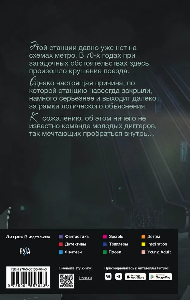 💳 Оплатить за товар можно при получении 🇰🇿 Есть бесплатная доставка по Казахстану от 1 дня 🎁 Копите бонусы с каждой покупки Этой станции давно уже нет на схемах метро. В 70-х годах при загадочных обстоятельствах здесь произошло крушение поезда. Однако настоящая причина, по которой станцию навсегда закрыли, намного серьезнее и выходит далеко за рамки логического объяснения. К сожалению, об этом ничего не известно команде молодых диггеров, так мечтающих пробраться внутрь... Мистический триллер. Михаил Николаевич Назаров — современный российский писатель, сценарист. |