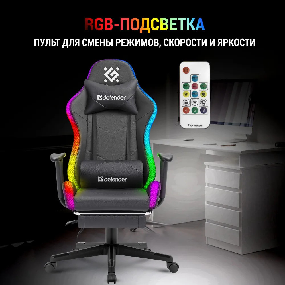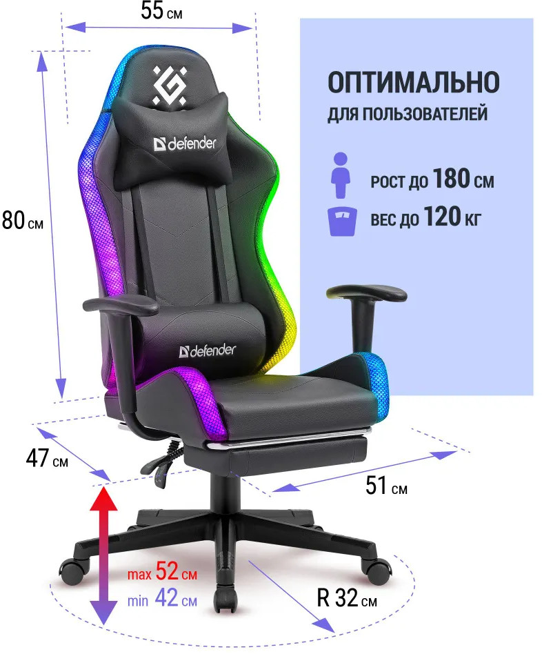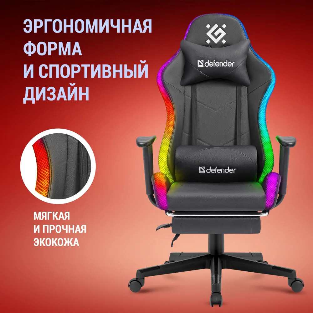 Стильное игровое кресло со встроенной подсветкой — удачное решение для геймеров, которые проводит много времени за компьютером. Откидывающаяся спинка и подставка для ног обеспечивают непревзойденный уровень комфорта. Кресло представлено в черном и белом цвете.