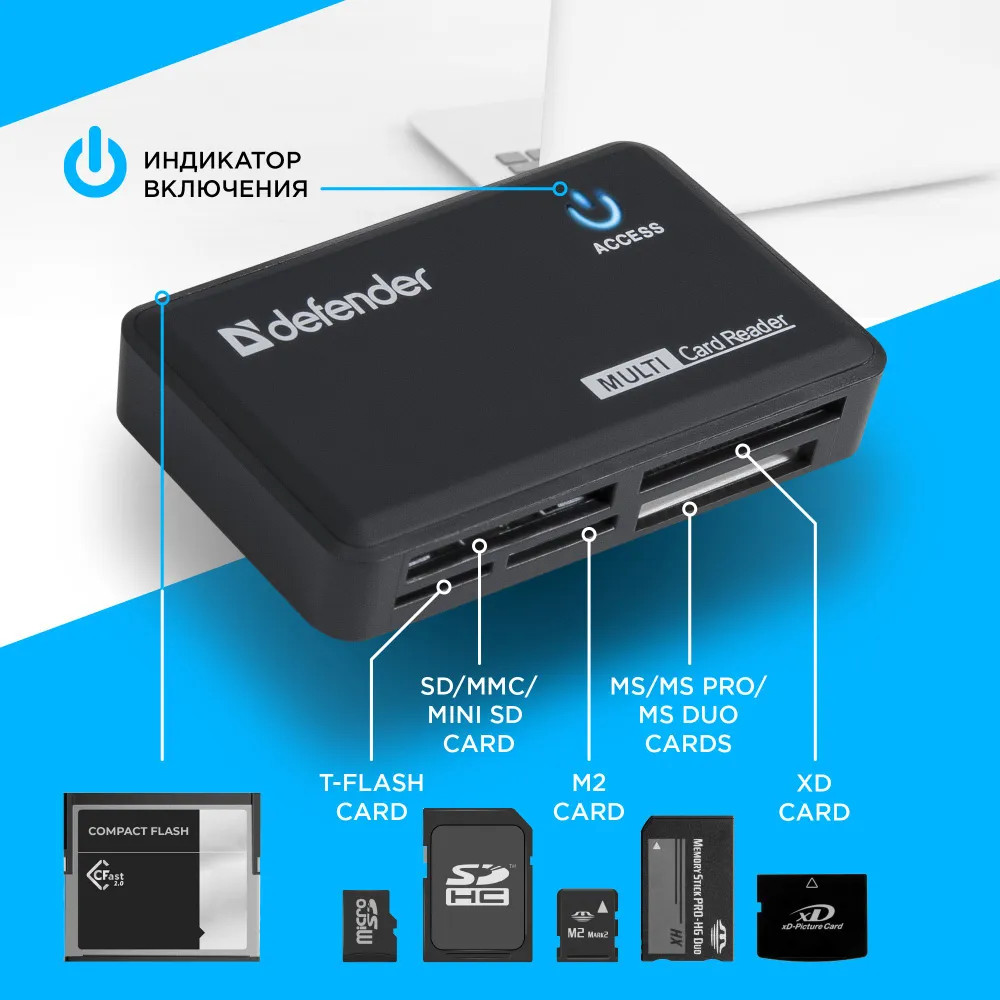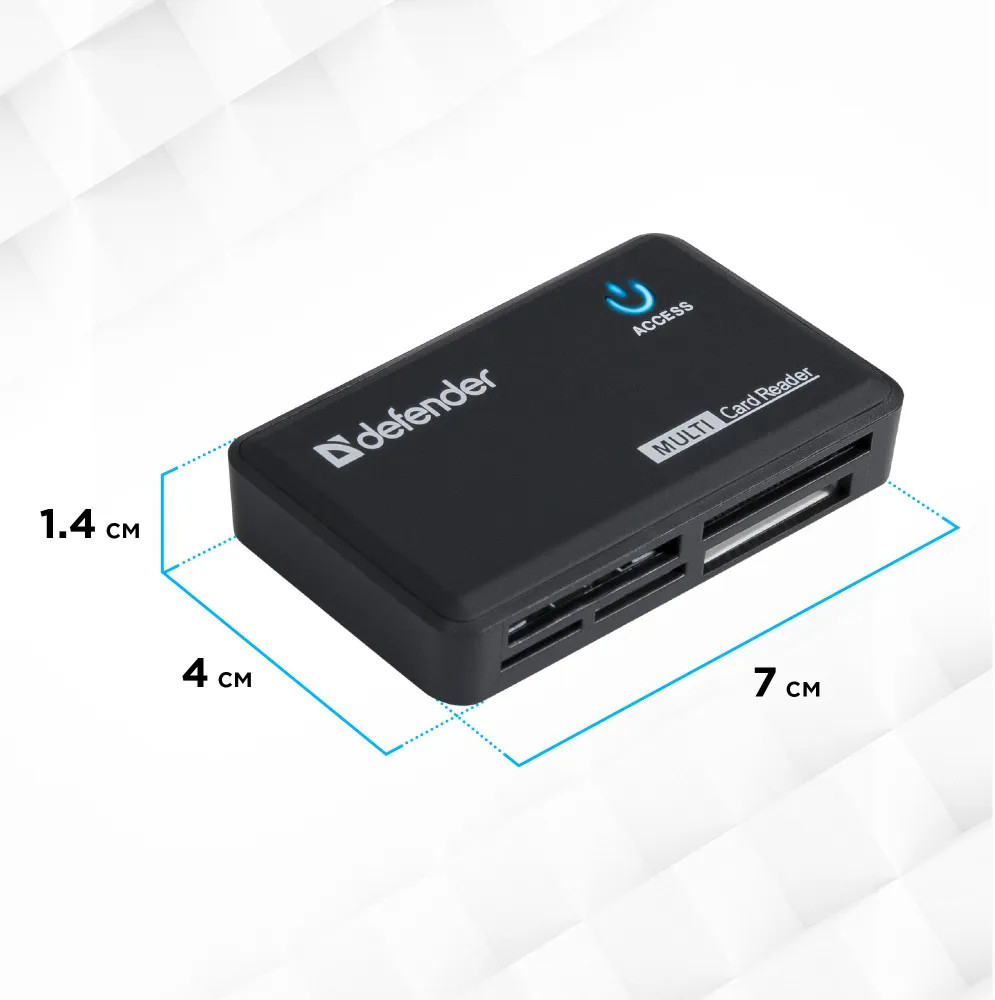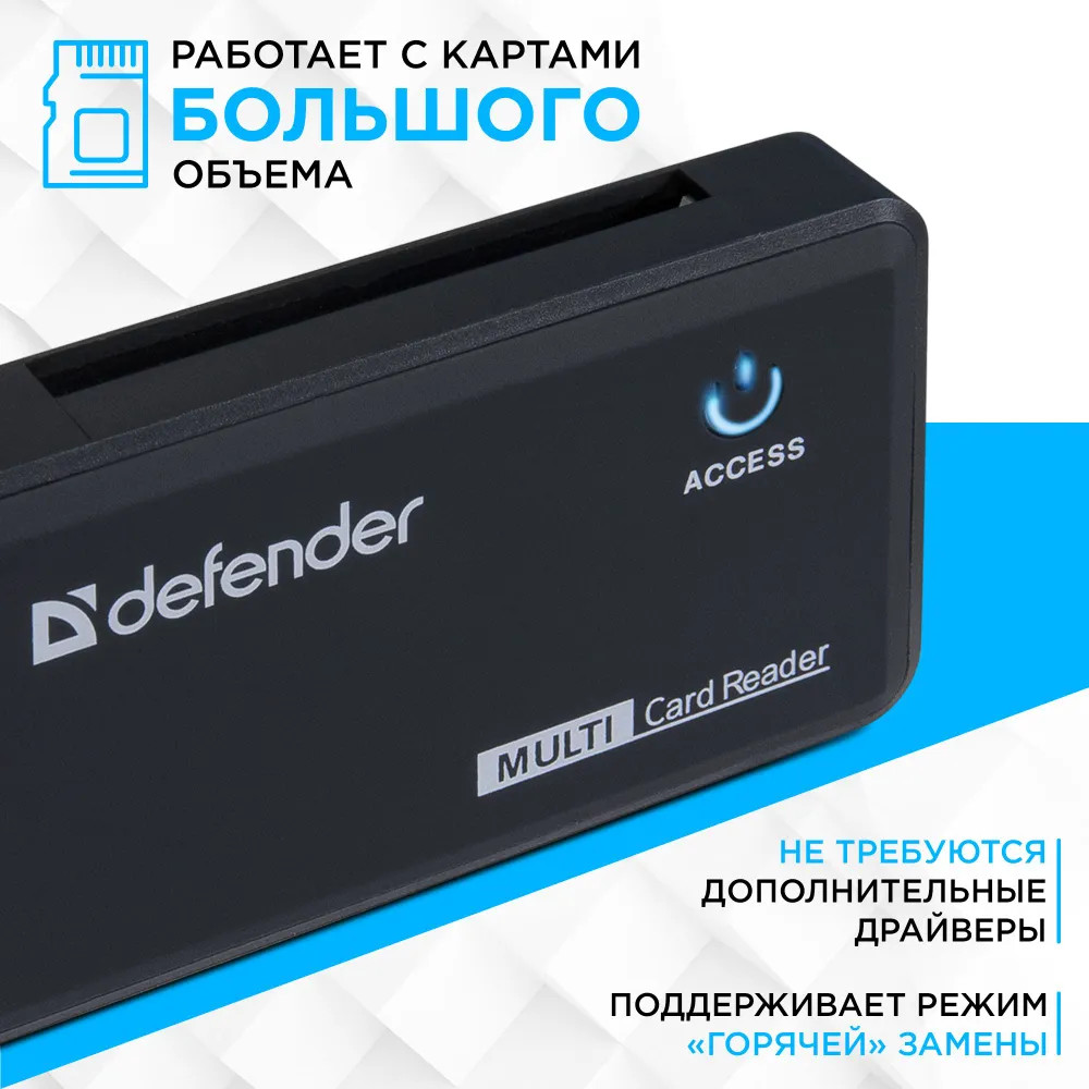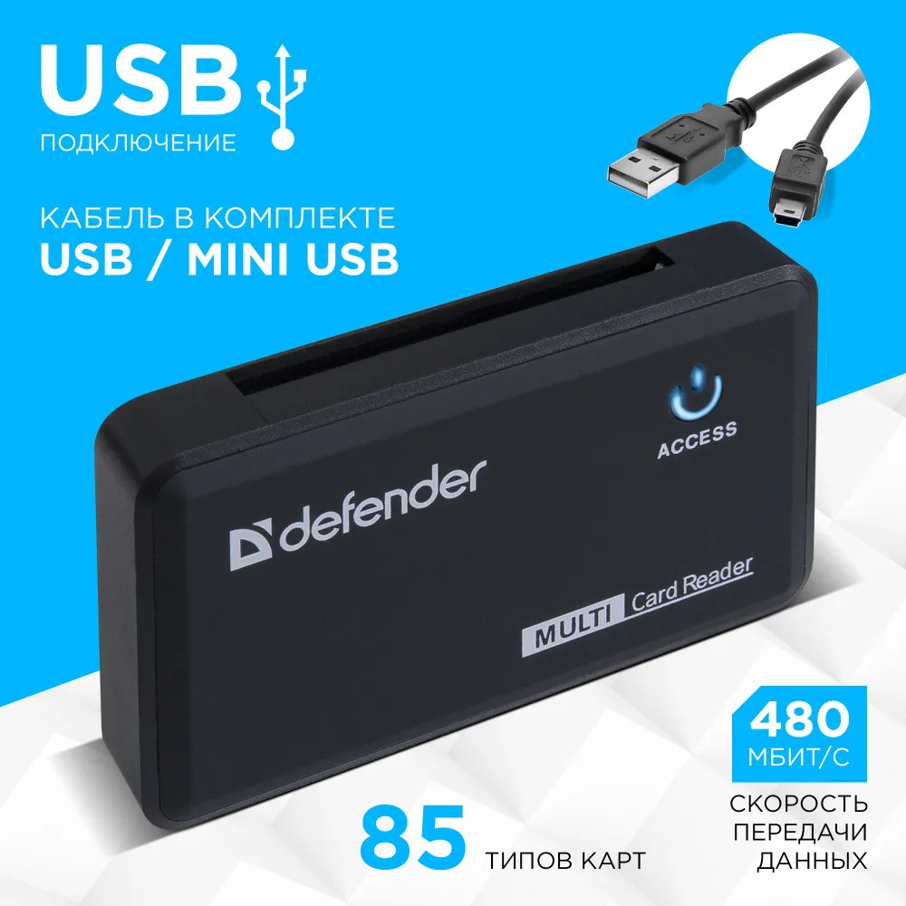 В данный момент этот товар отсутствует в продаже. Возможно, у нас найдется аналогичный или похожий товар здесь. Картридер Defender Optimus — мультиформатное устройство для чтения и записи карт памяти, широко применяемых в мобильных устройствах, фотоаппаратах, видеорегистраторах, камерах и других устройствах компьютерной периферии: