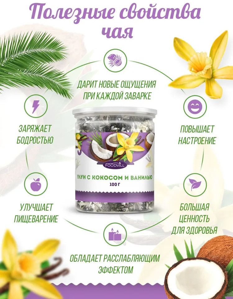 Foodvill Чай листовой «Улун с кокосом и ванилью»
