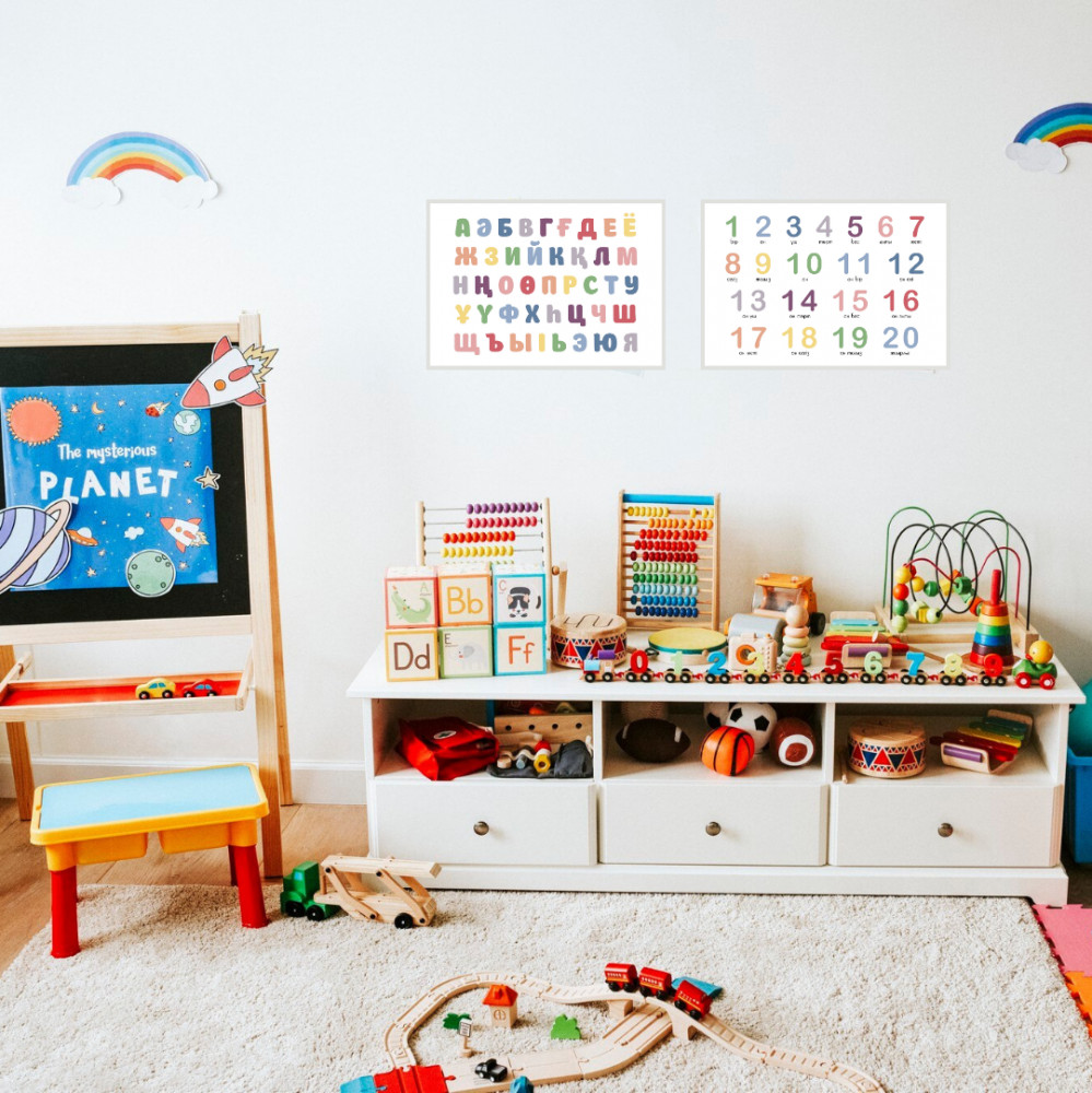BALAMOUR Обучающие постеры на казахском языке «Алфавит и цифры»+110