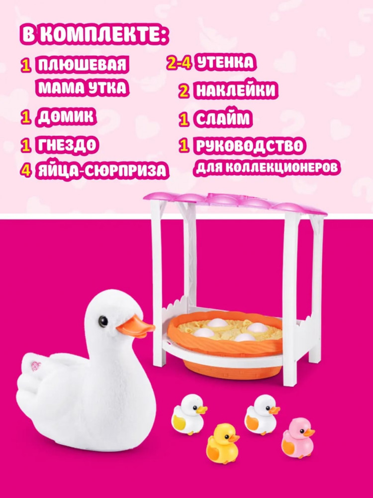 Zuru Игрушка интерактивная «Мама-Утка и утята»В данный момент этот товар отсутствует в продаже. Возможно, у нас найдется аналогичный или похожий товар здесь. Серия: Pets Alive Какое увлекательное приключение ждет вас с этими игровым набором: милыми утятами и Мамой-Уткой! Узнайте, сколько утят вылупится из яичка — 2, 3 или 4, и наслаждайтесь удивительными сюрпризами, скрытыми внутри этой игрушки для девочек. Вы сможете найти слайм-сюрприз из желтка или милые наклейки, которые подарят вам радость. |