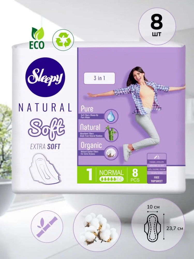 Sleepy Прокладки гигиенические Классик «Natural Soft Normal 1»